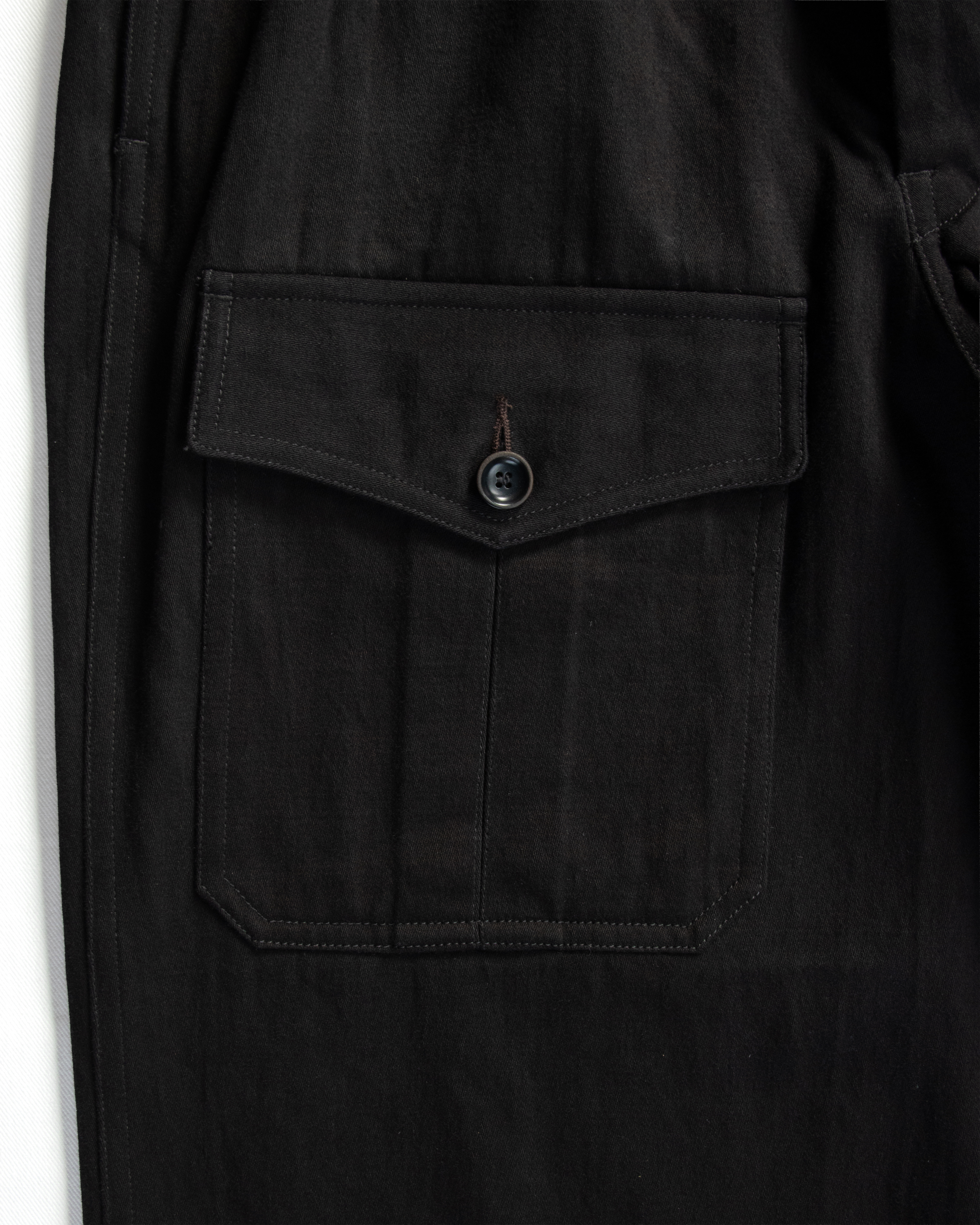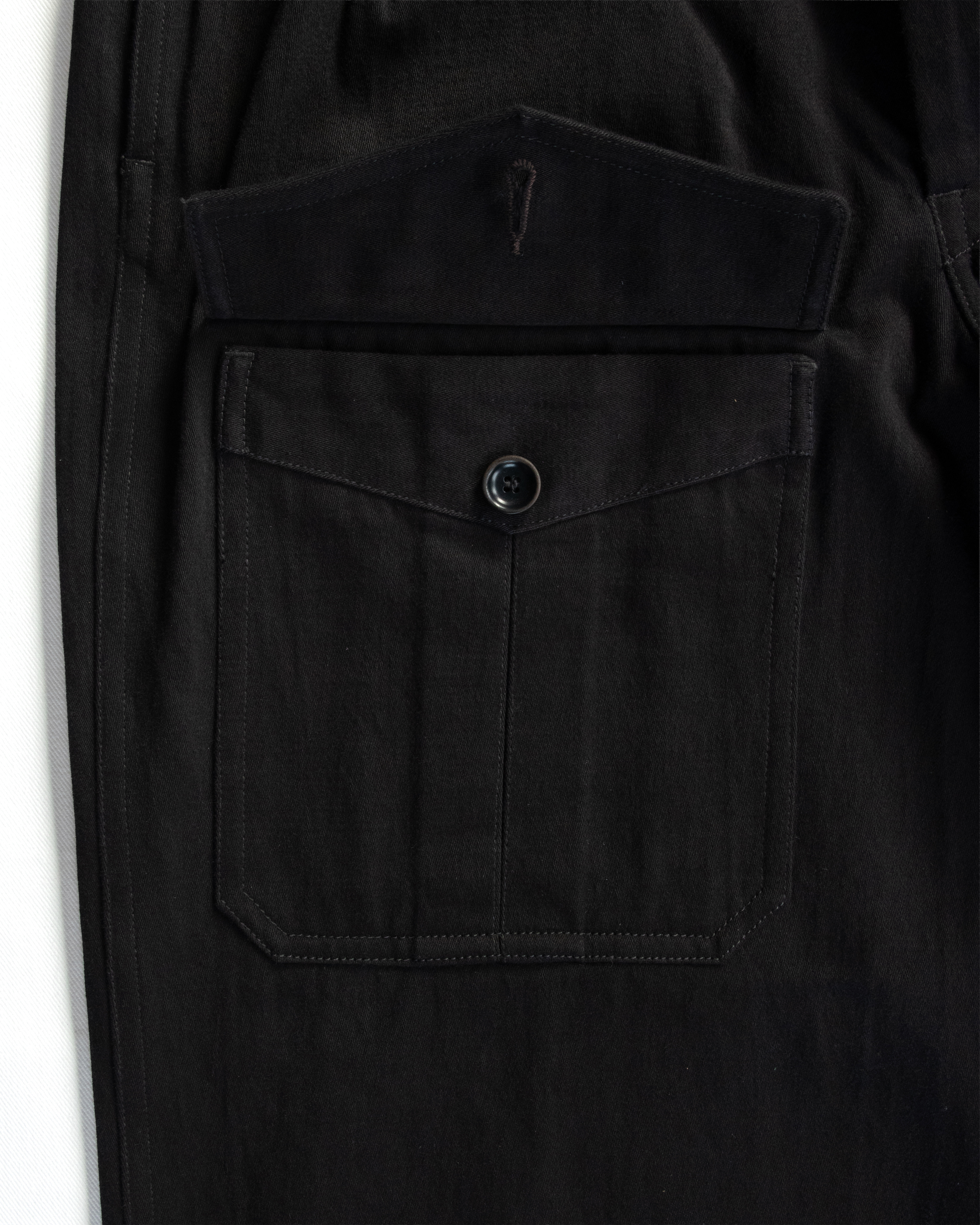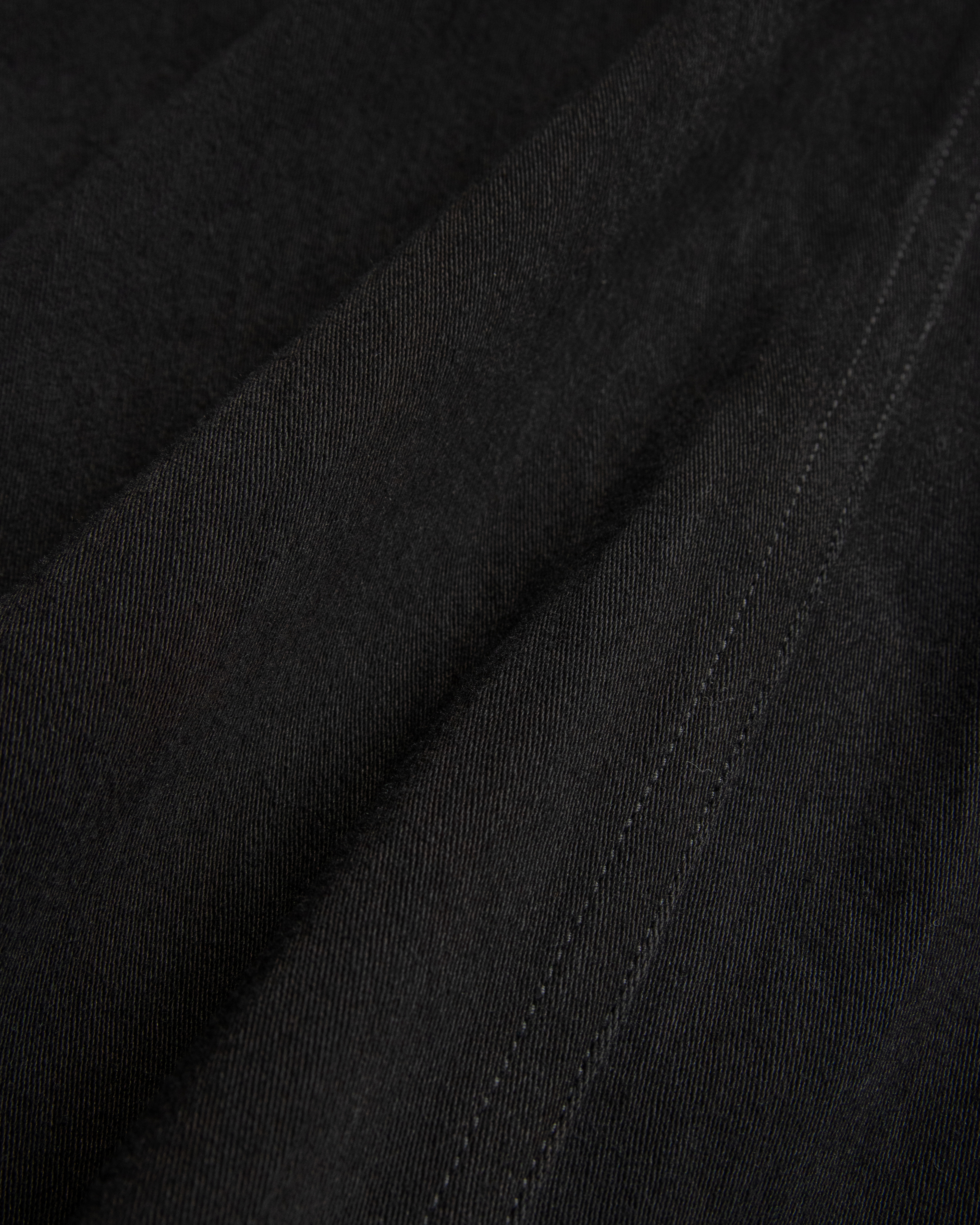黒色は紅下という着物などで使われる赤色で先に染めてから黒を入れる事で深く濃度の高い黒色で染め上げる技法を採用しています。 さらに私たちは黒を二回染めているので色落ちがしづらく発色の美しい黒色に仕上げています。