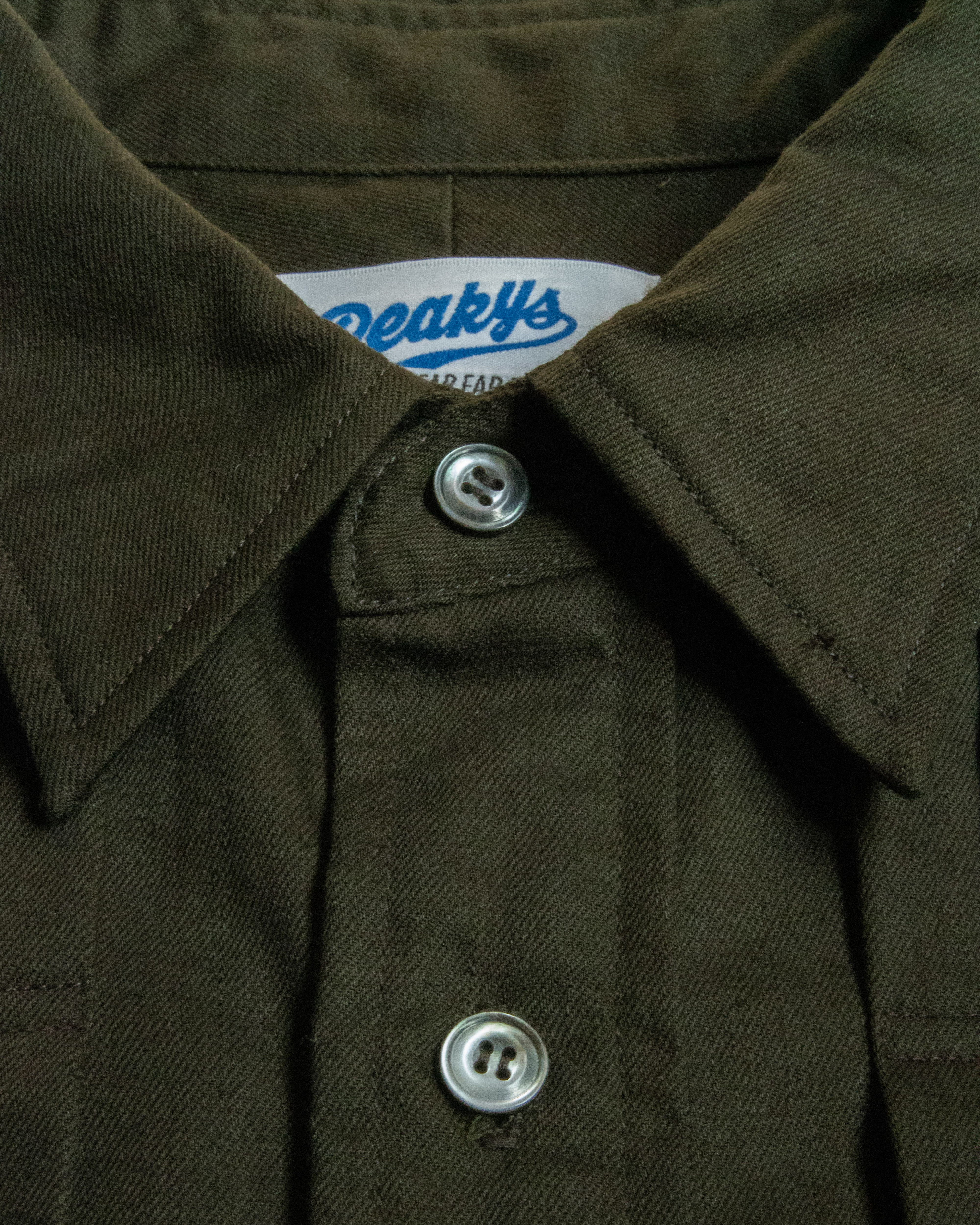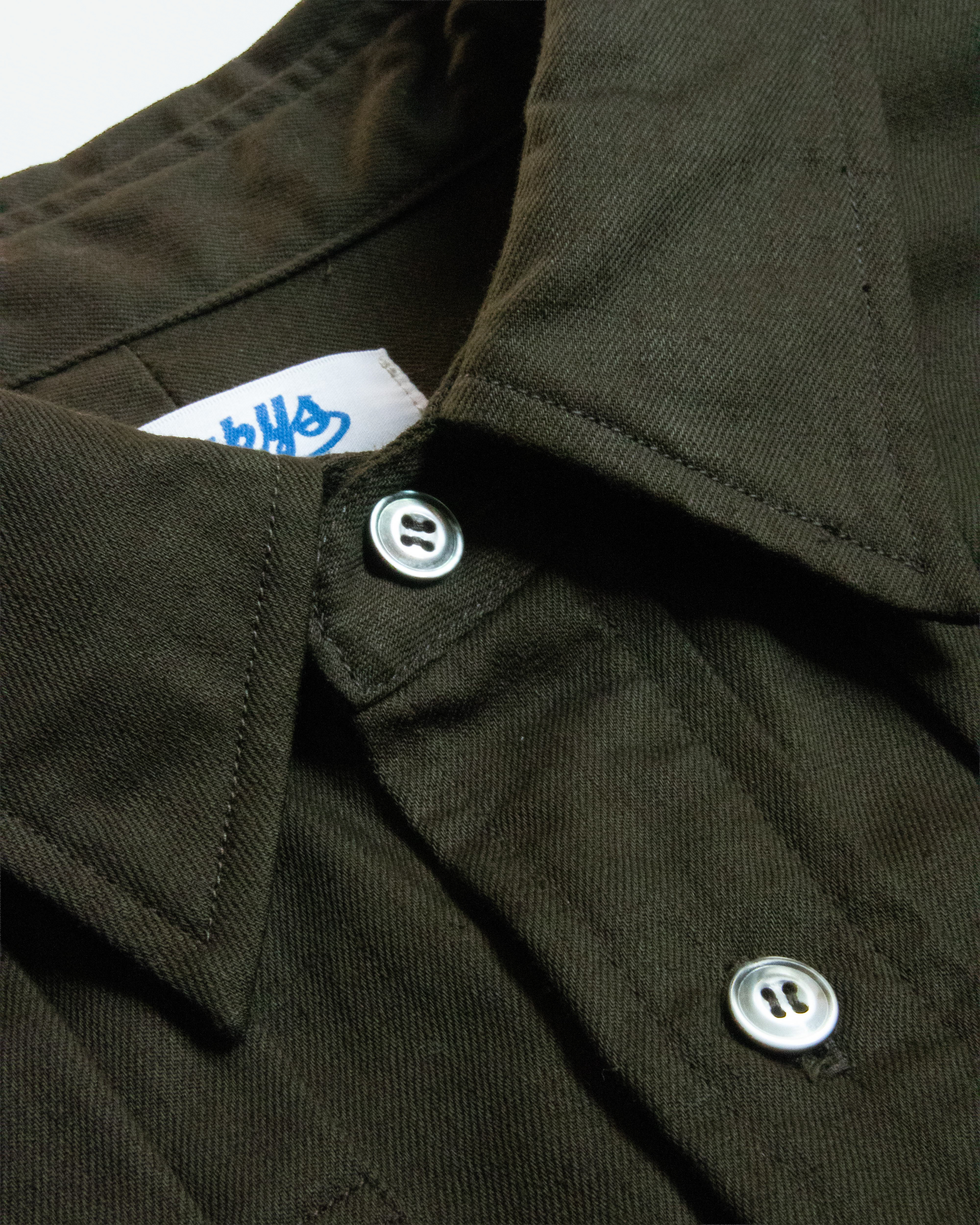 このシャツの黒色は他の紅下の黒とは違い青みに振ってから黒を二回染めているので清涼感、清潔感のより感じられる黒色に仕上げています。ですが他の黒同様2回染めているのでしっかり黒い状態を長持ちさせる事が出来ます。