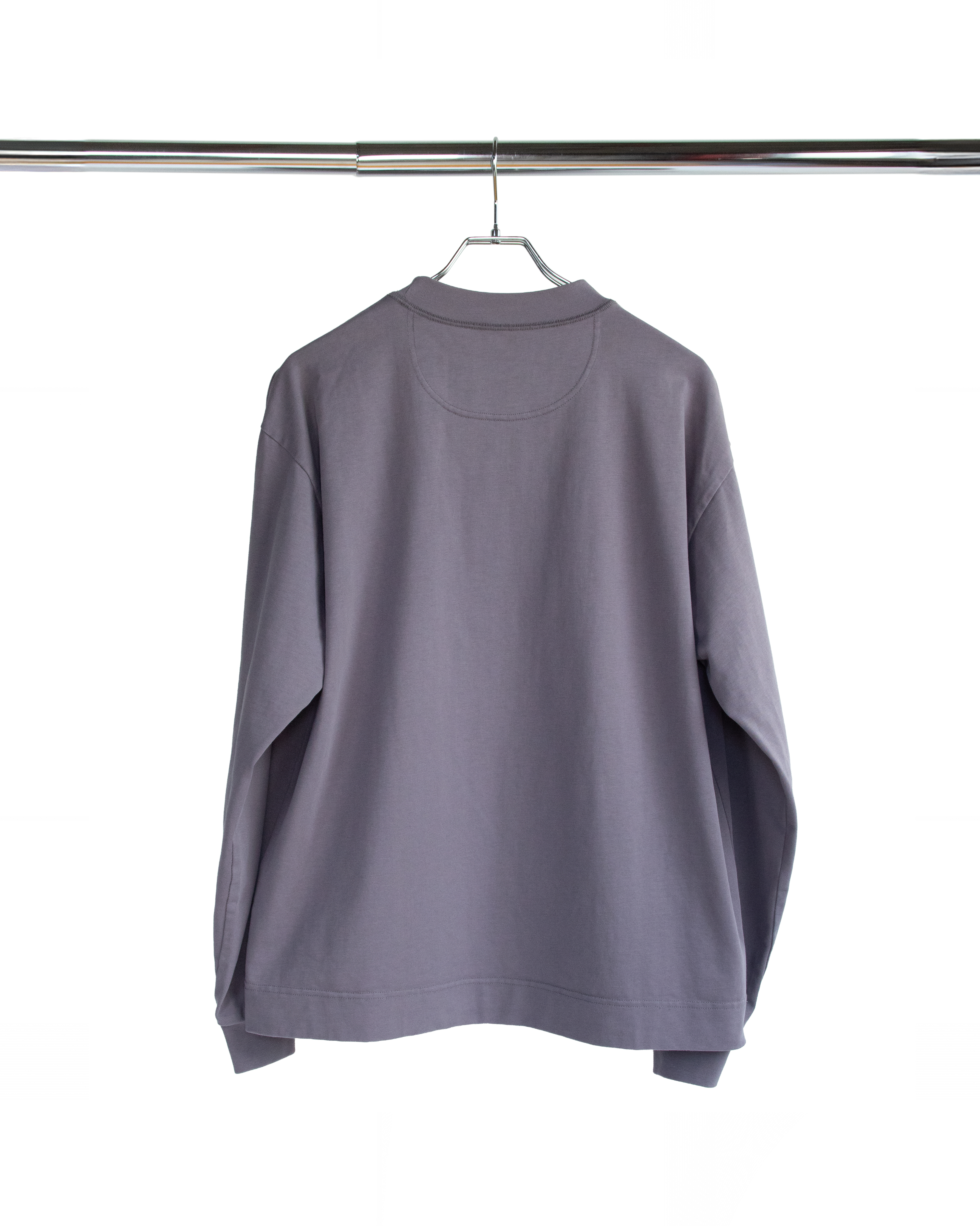 T-SHの上に重ね着した際に隠れるように首元はあえて少し広めに設計しています。