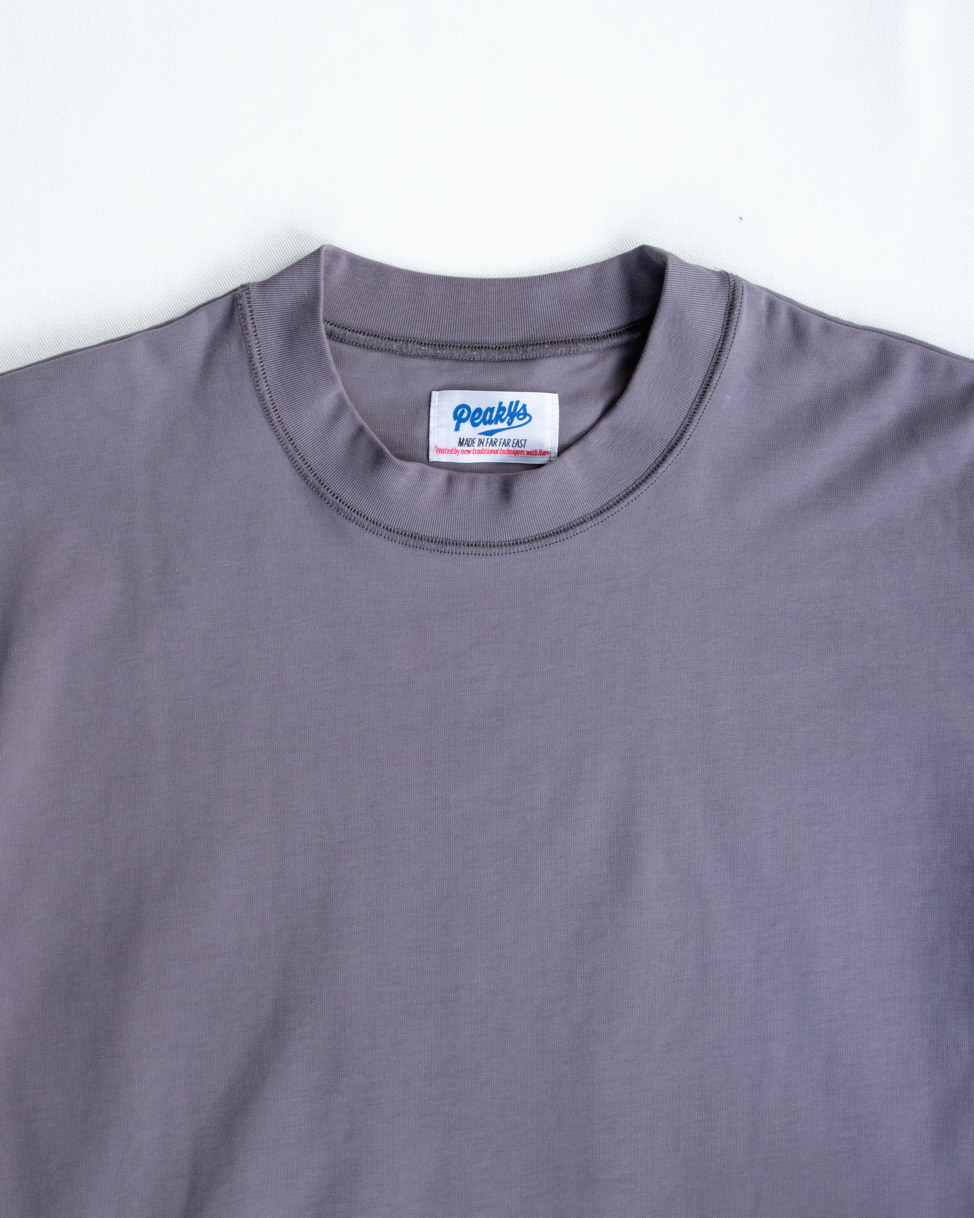 しわになりにくくヨレづらくイージーケアで着用できることに加え、洗濯の度にぎゅっと目が詰まり、凹凸のしっかりした表情を感じられるのでT-SHとはいえ経年変化を味わえる、育てがいのある一着に仕上げました。
