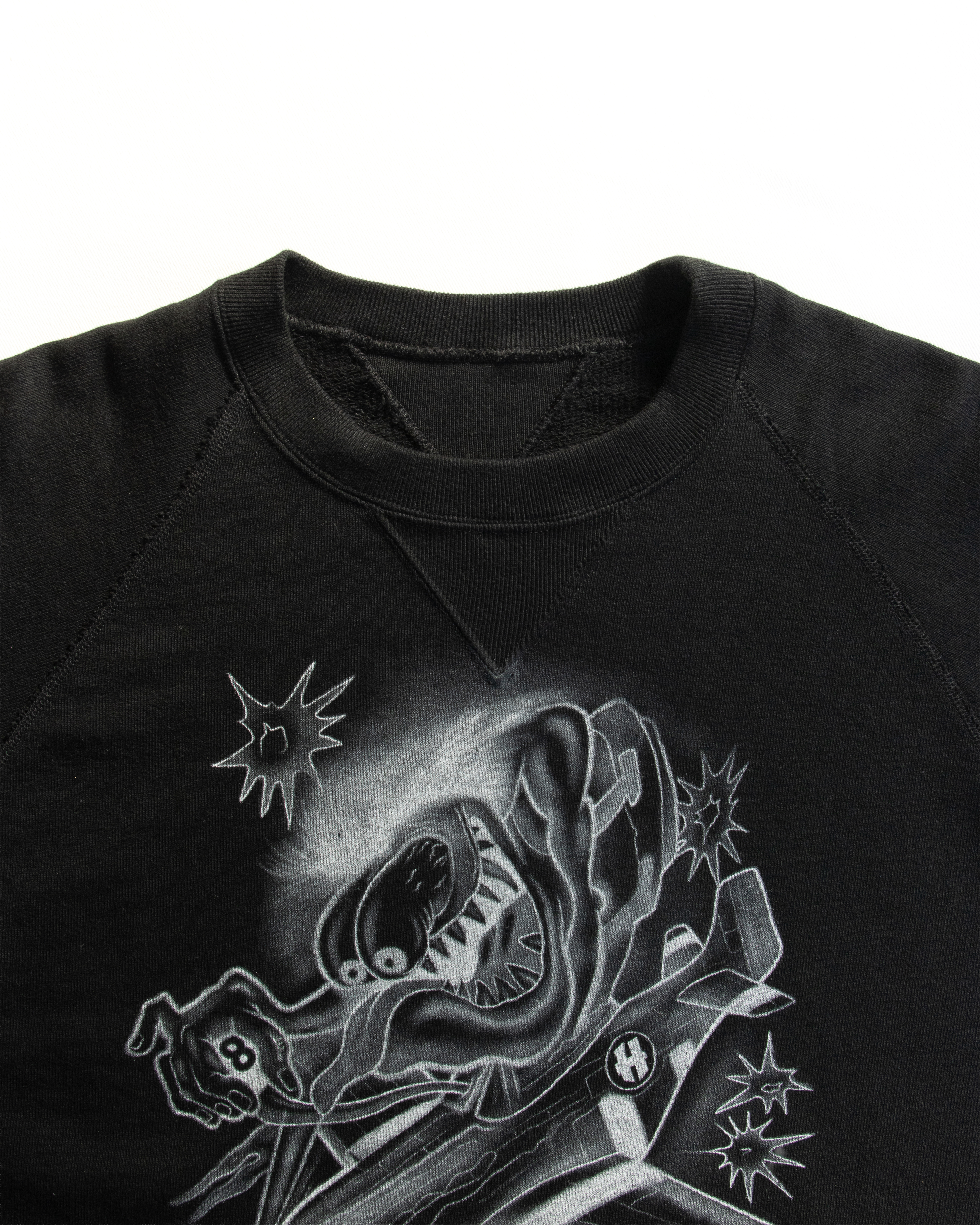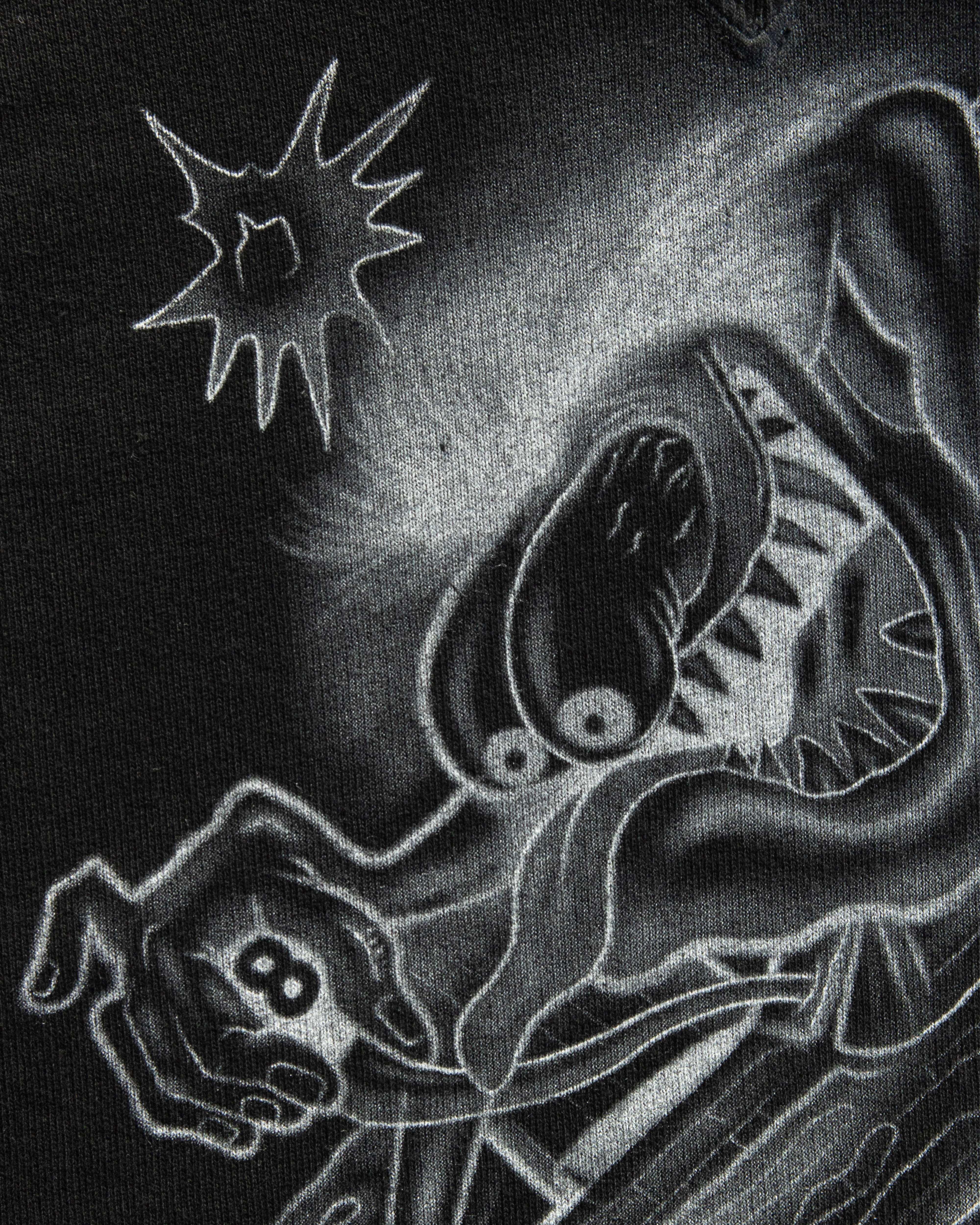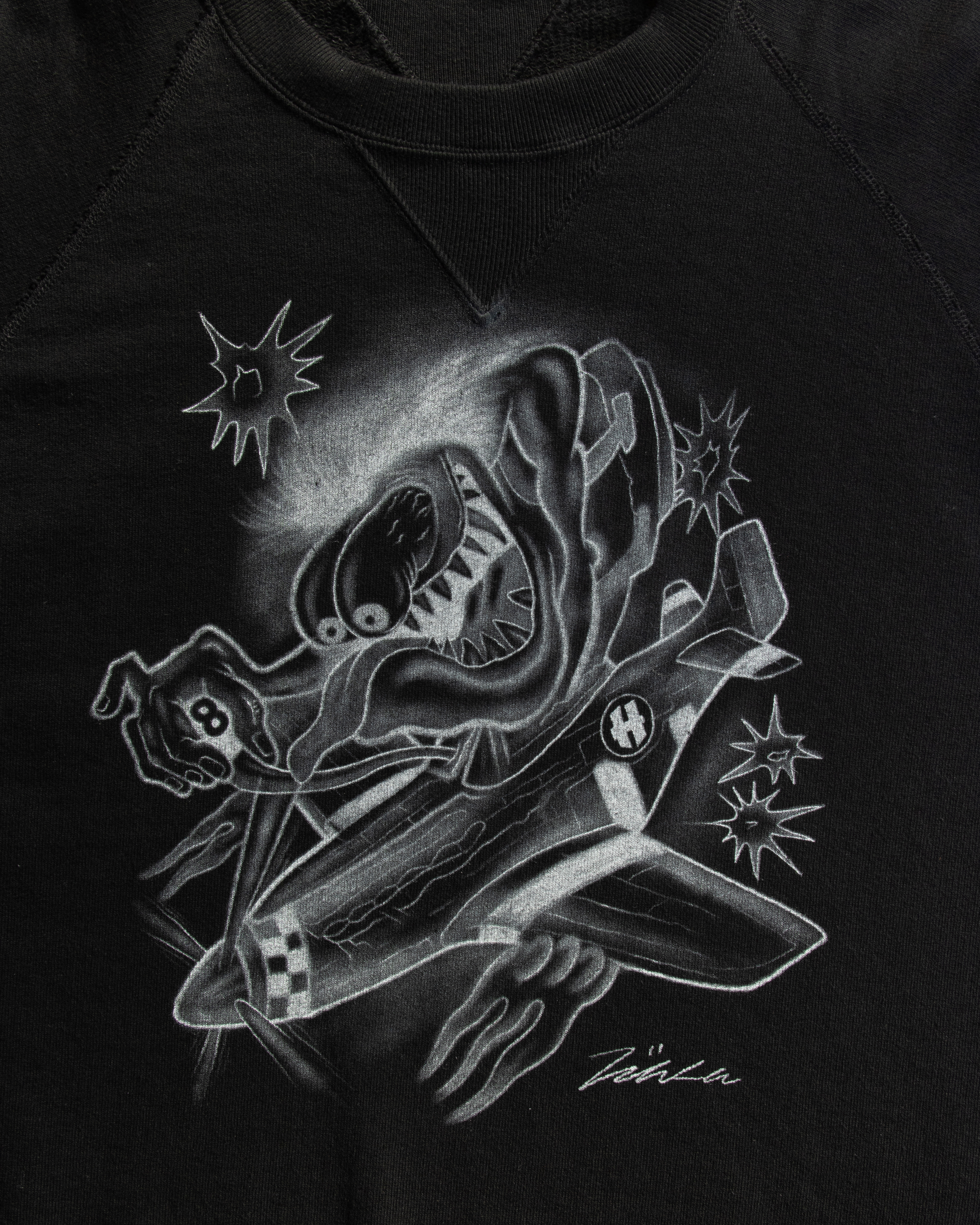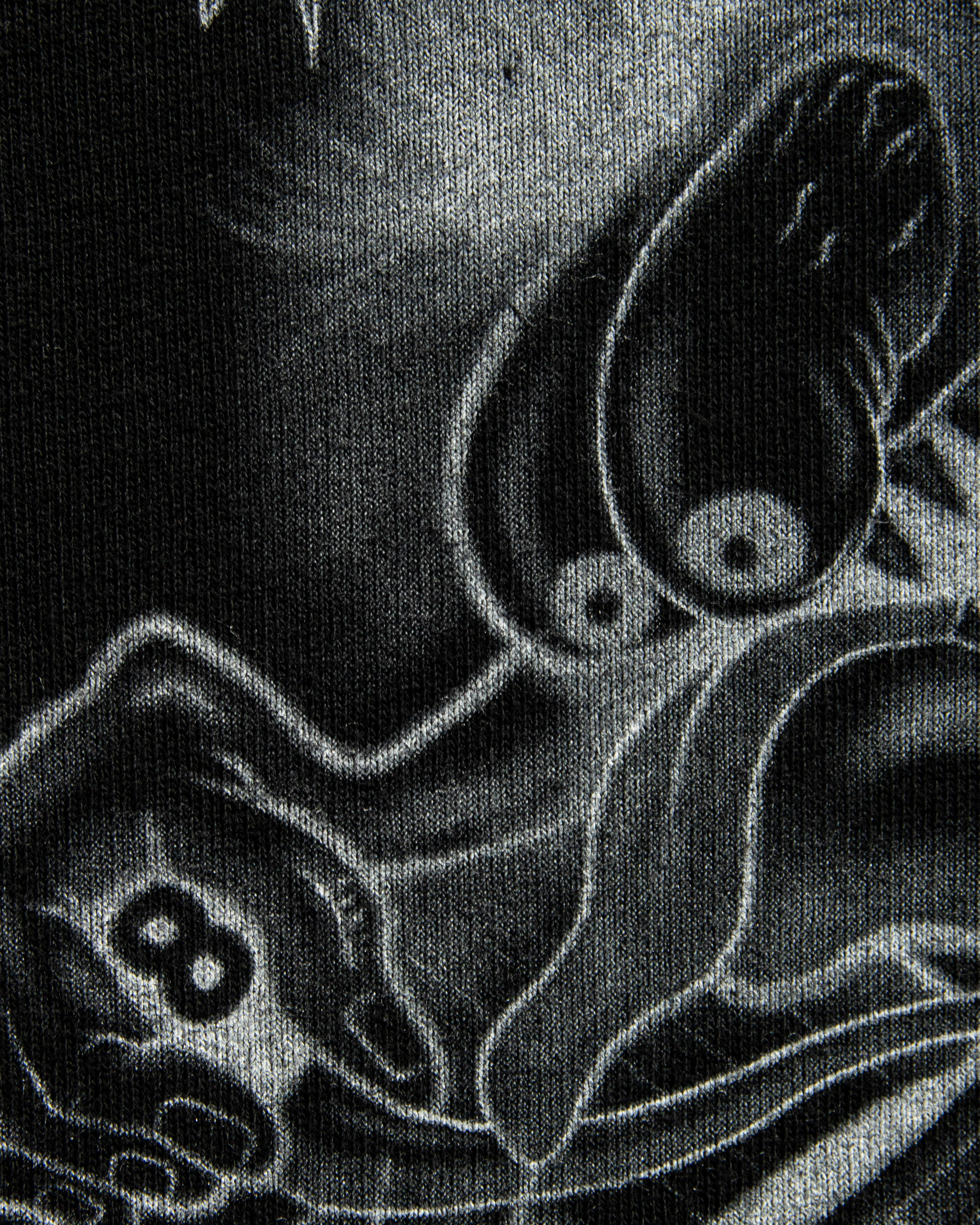 原画のスプレープリントの手描き感やぼかしの美しさを精密に表現するために、シルクスクリーンの手捺染でプリントしています。
