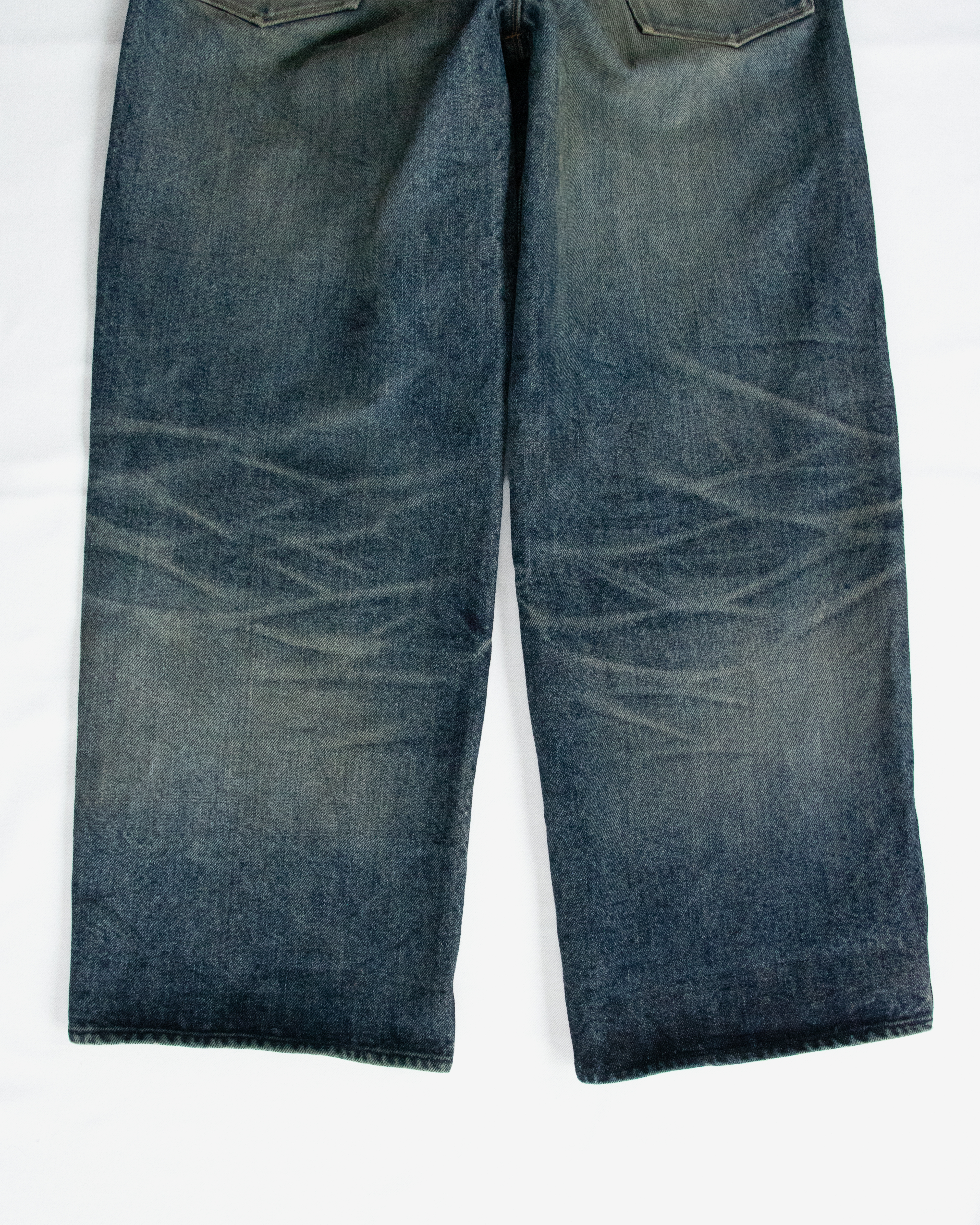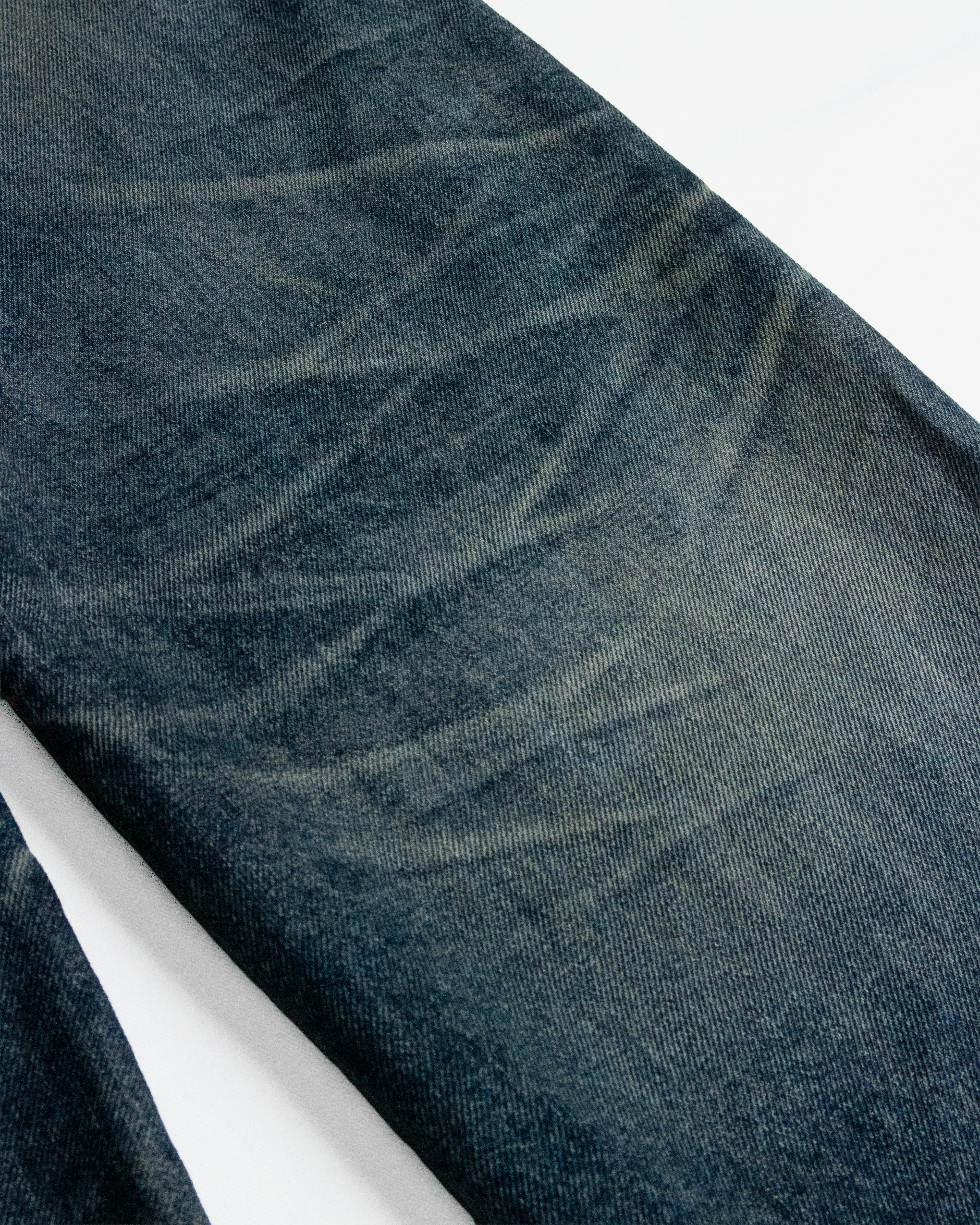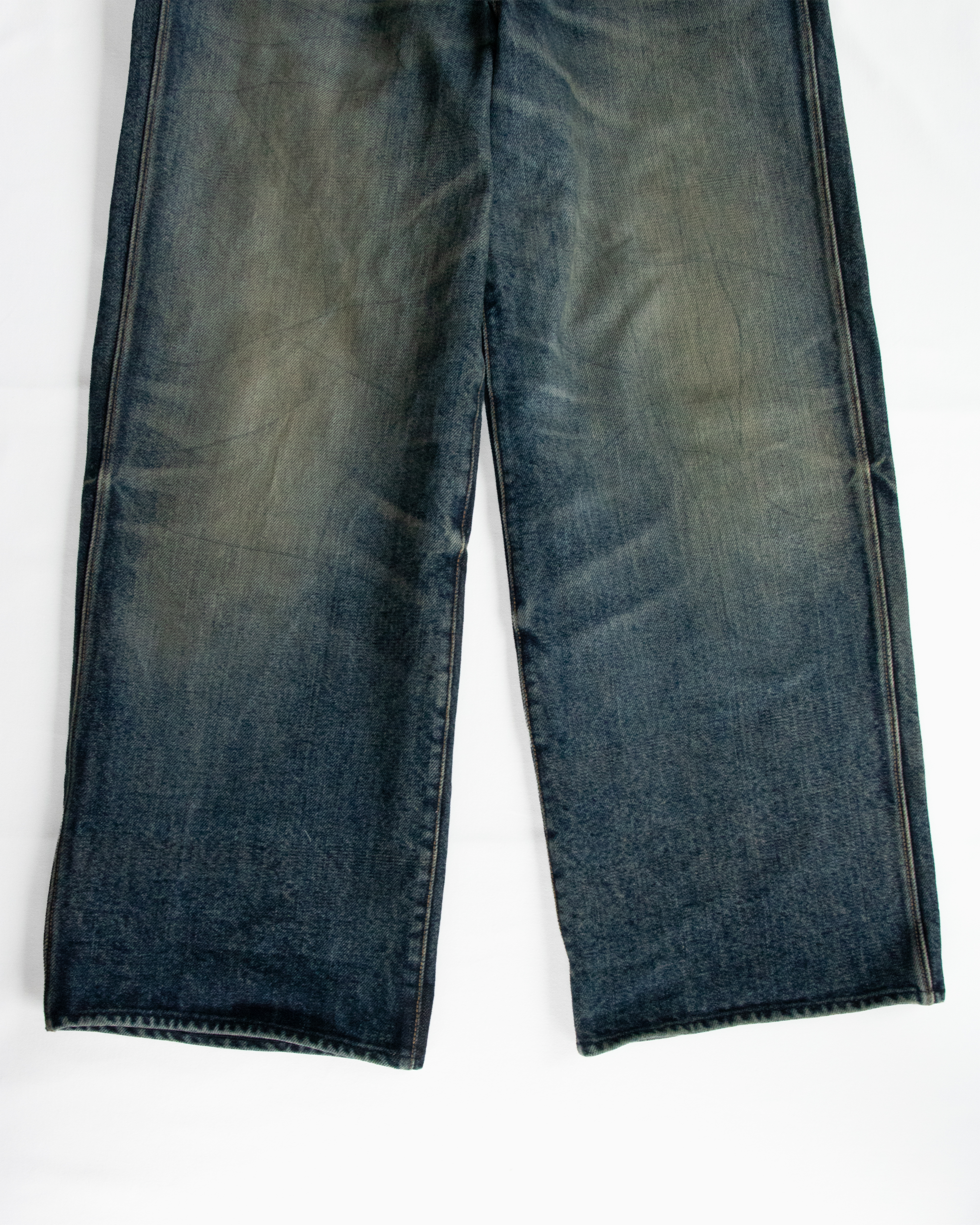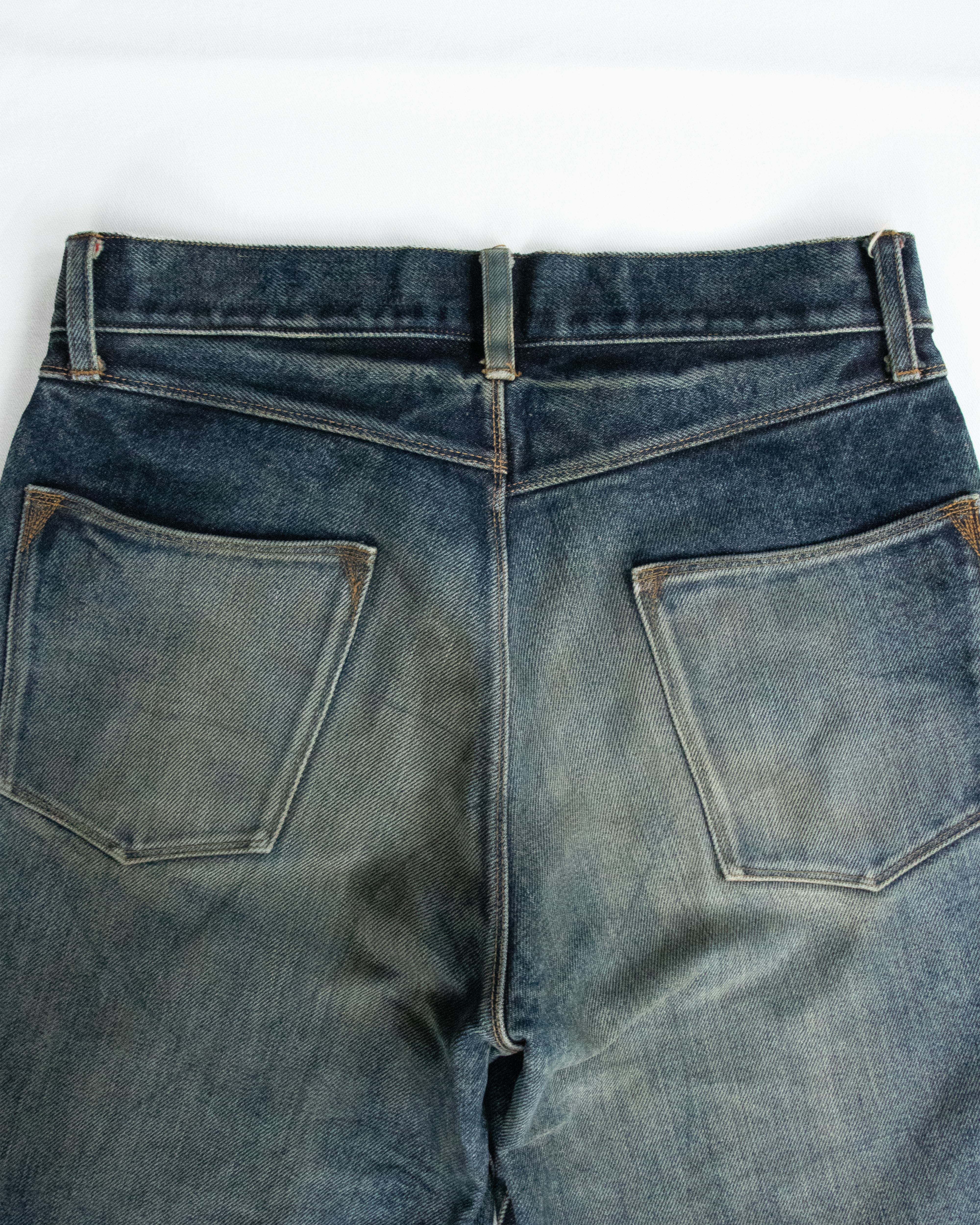 後ろ中心のみ墨藍染のベルトループにしているので本藍とindigoの経年変化の差を楽しんでください。