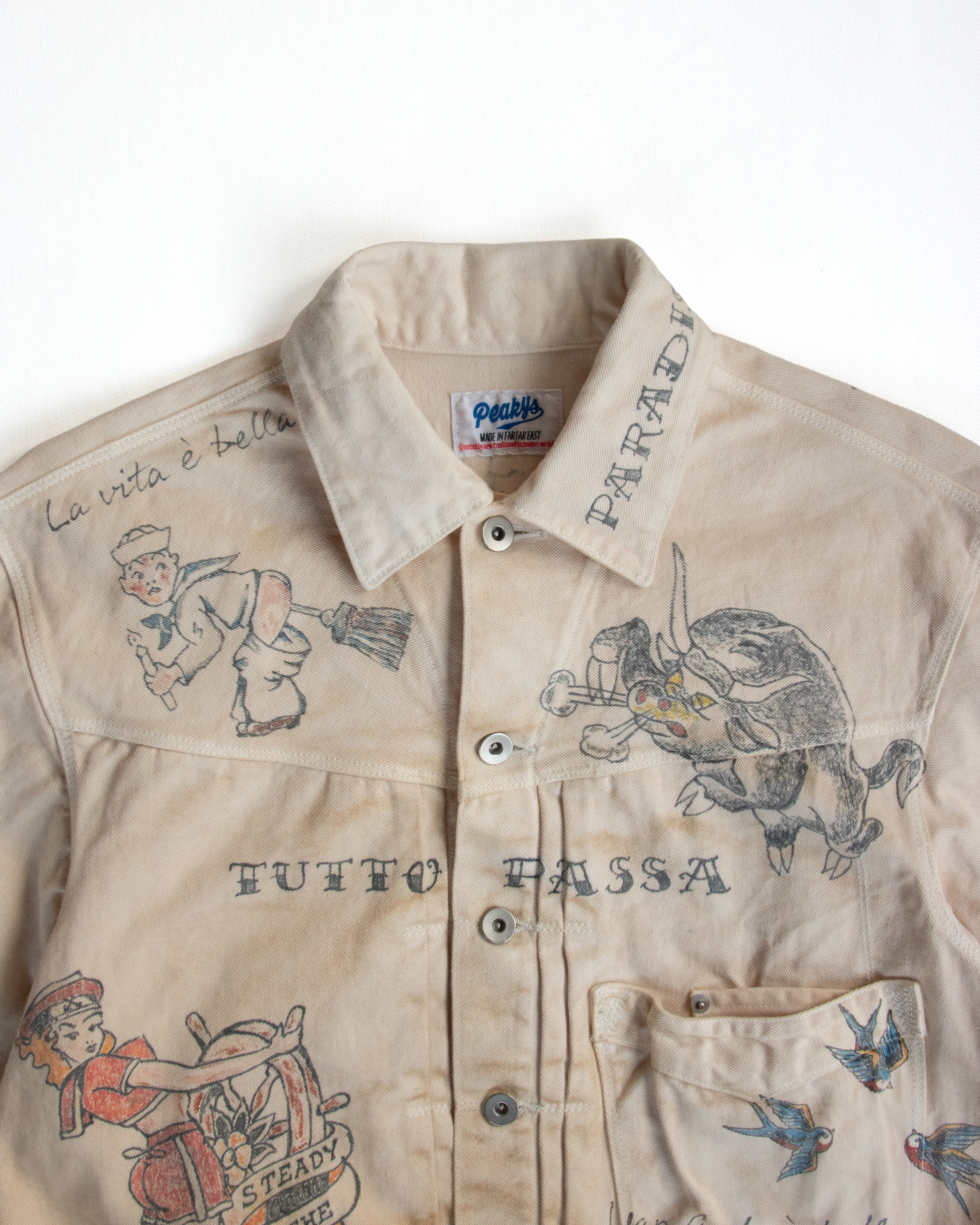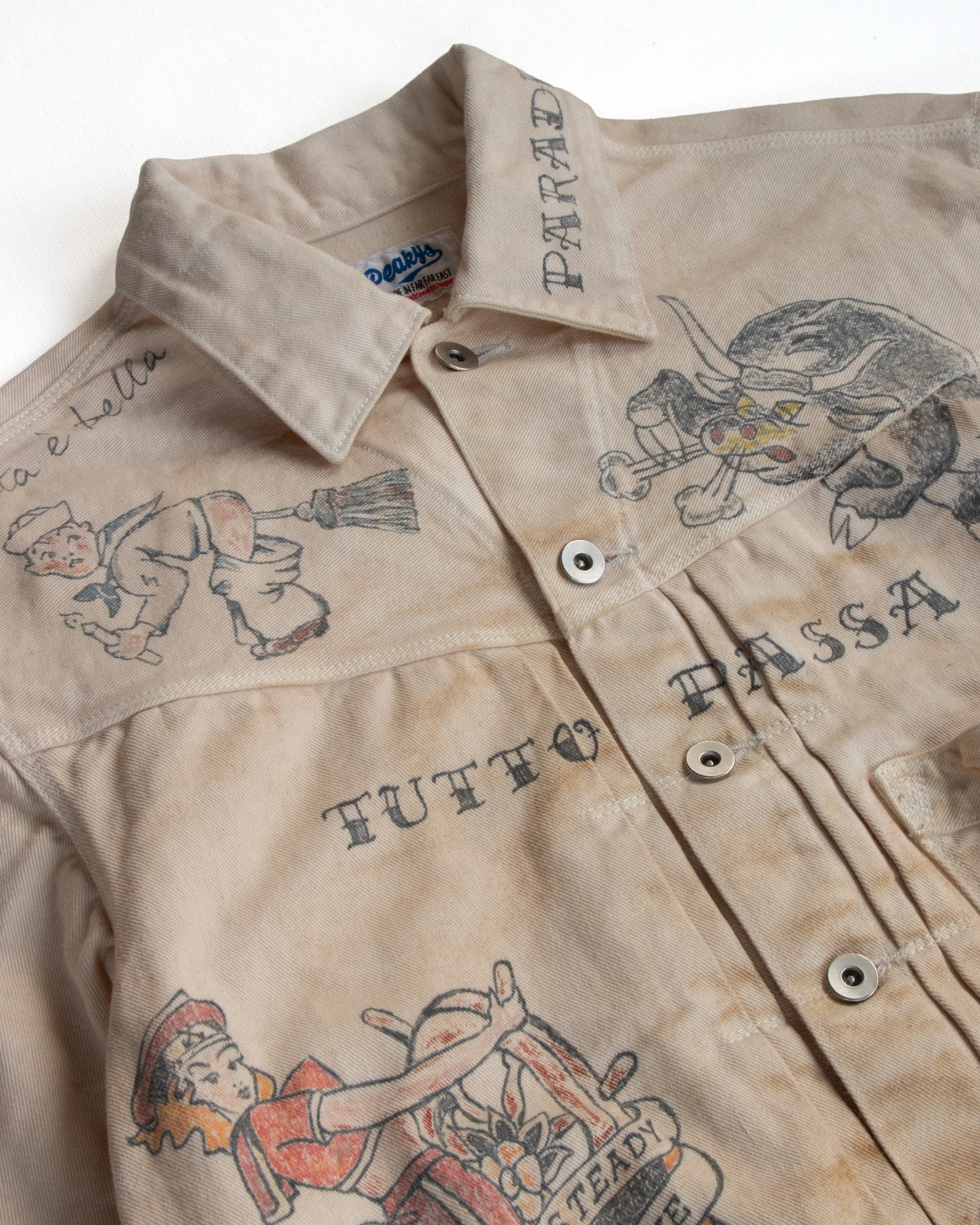 アメリカの水兵のタトゥー柄をメモリアルジャケットに落とし込みました。