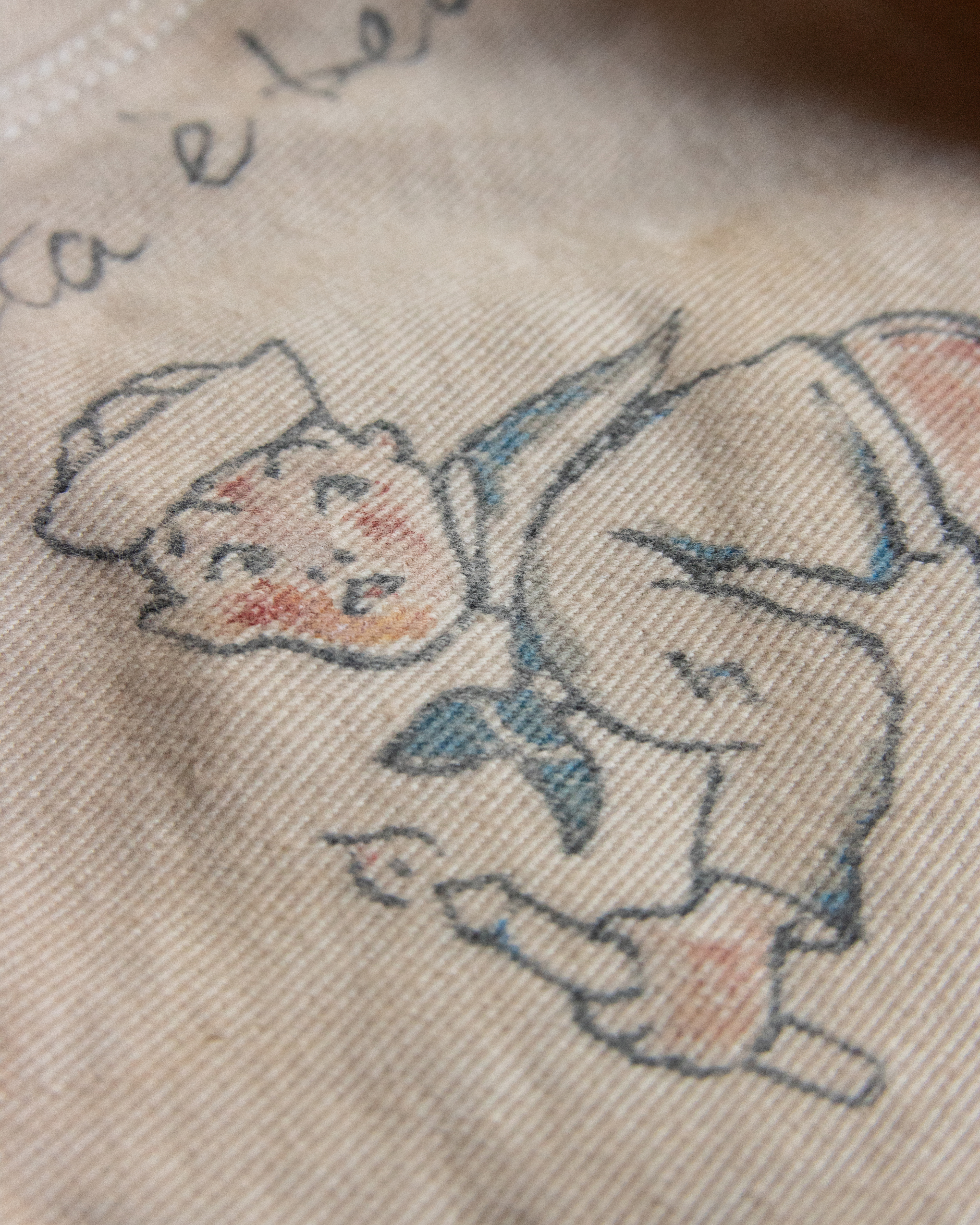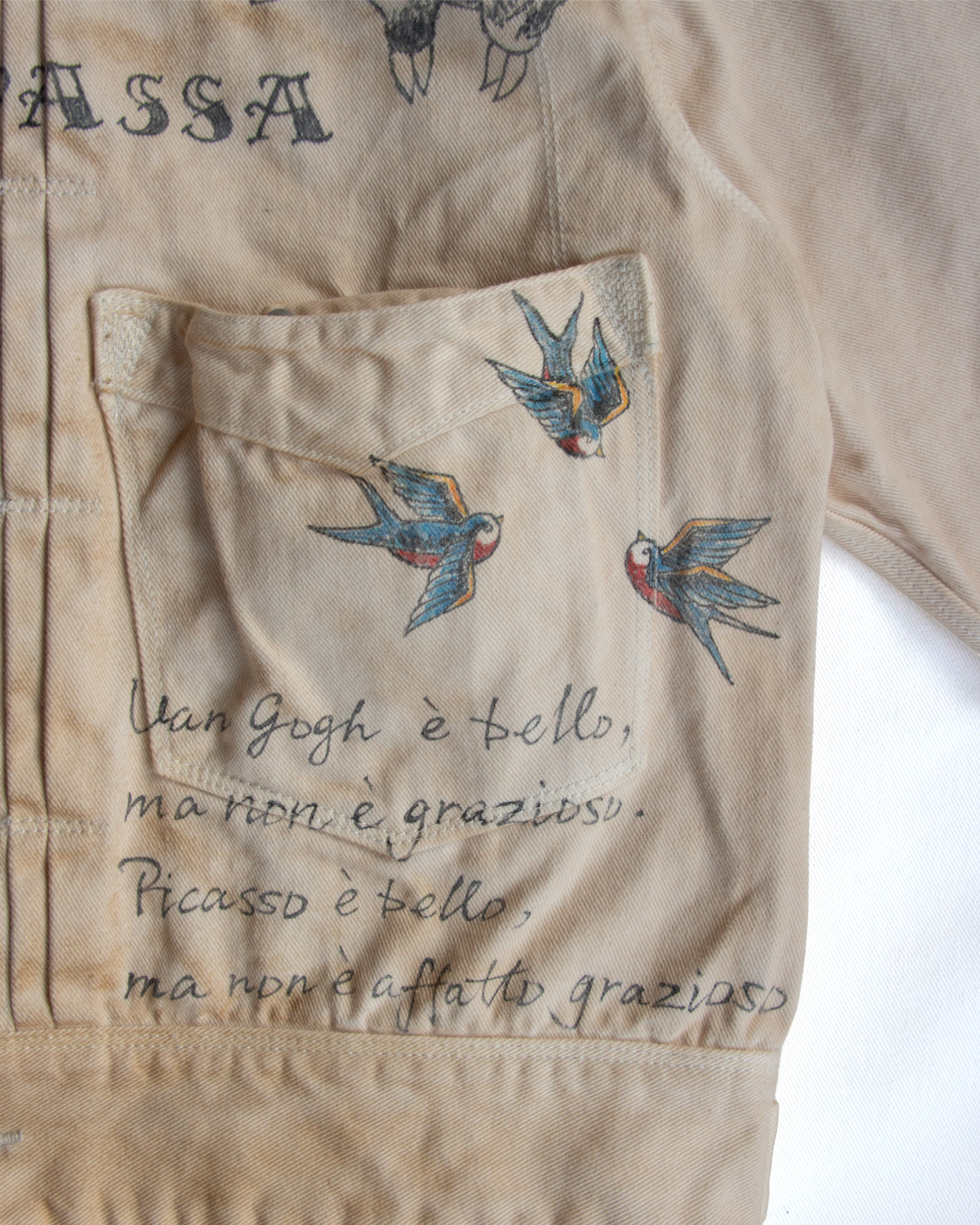 全面にハンドペイントを施した後、ヴィンテージ加工を入れた1点物になります。