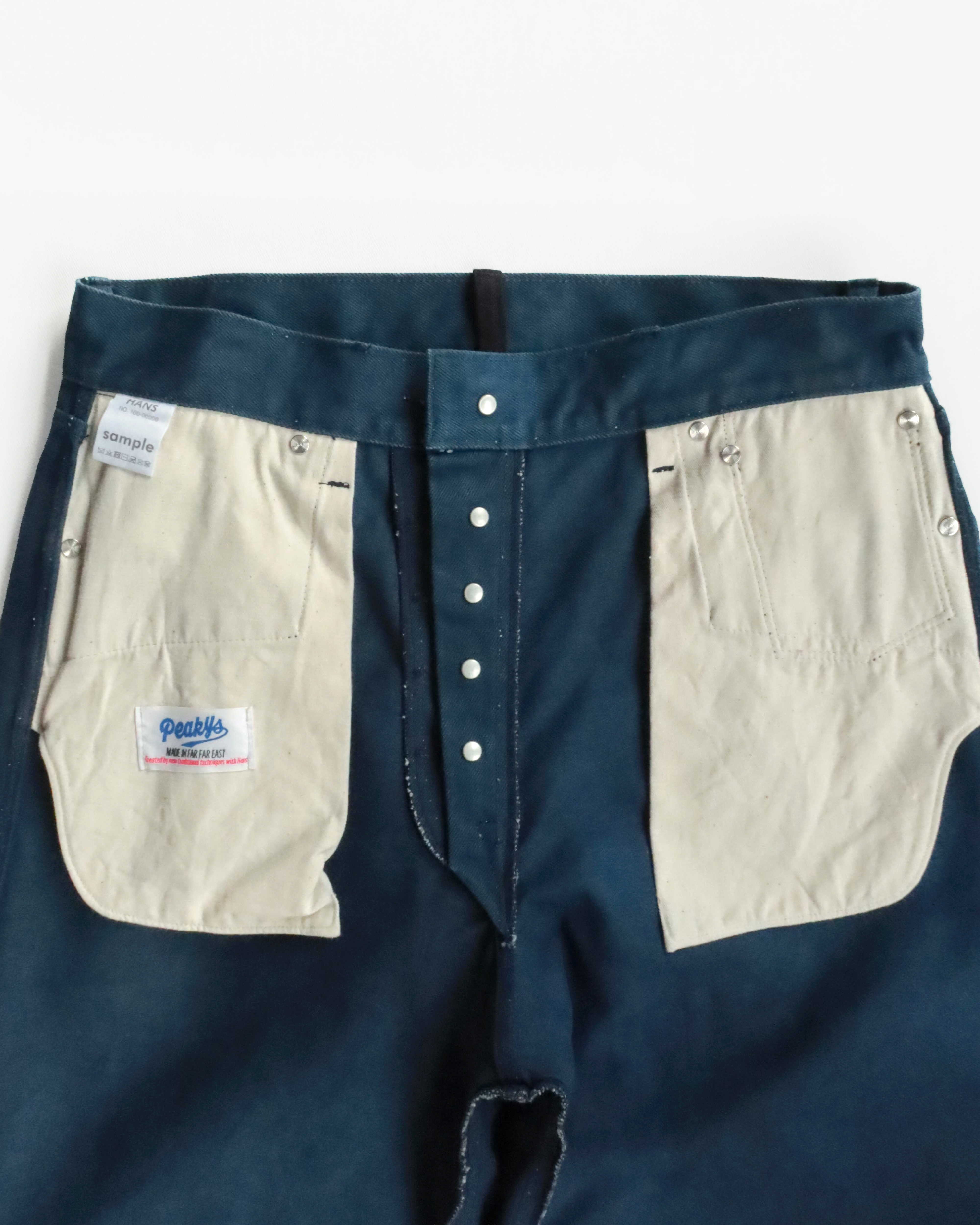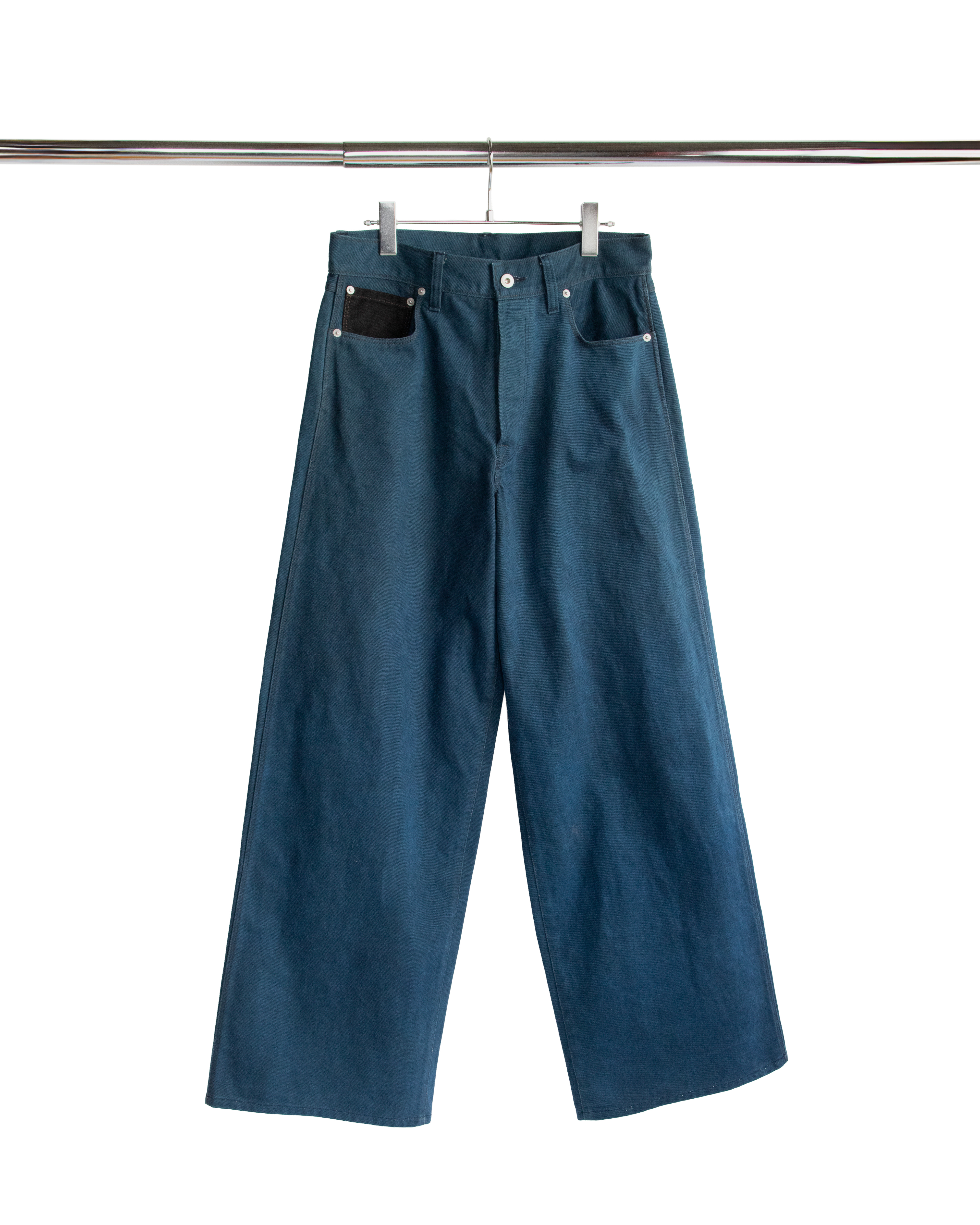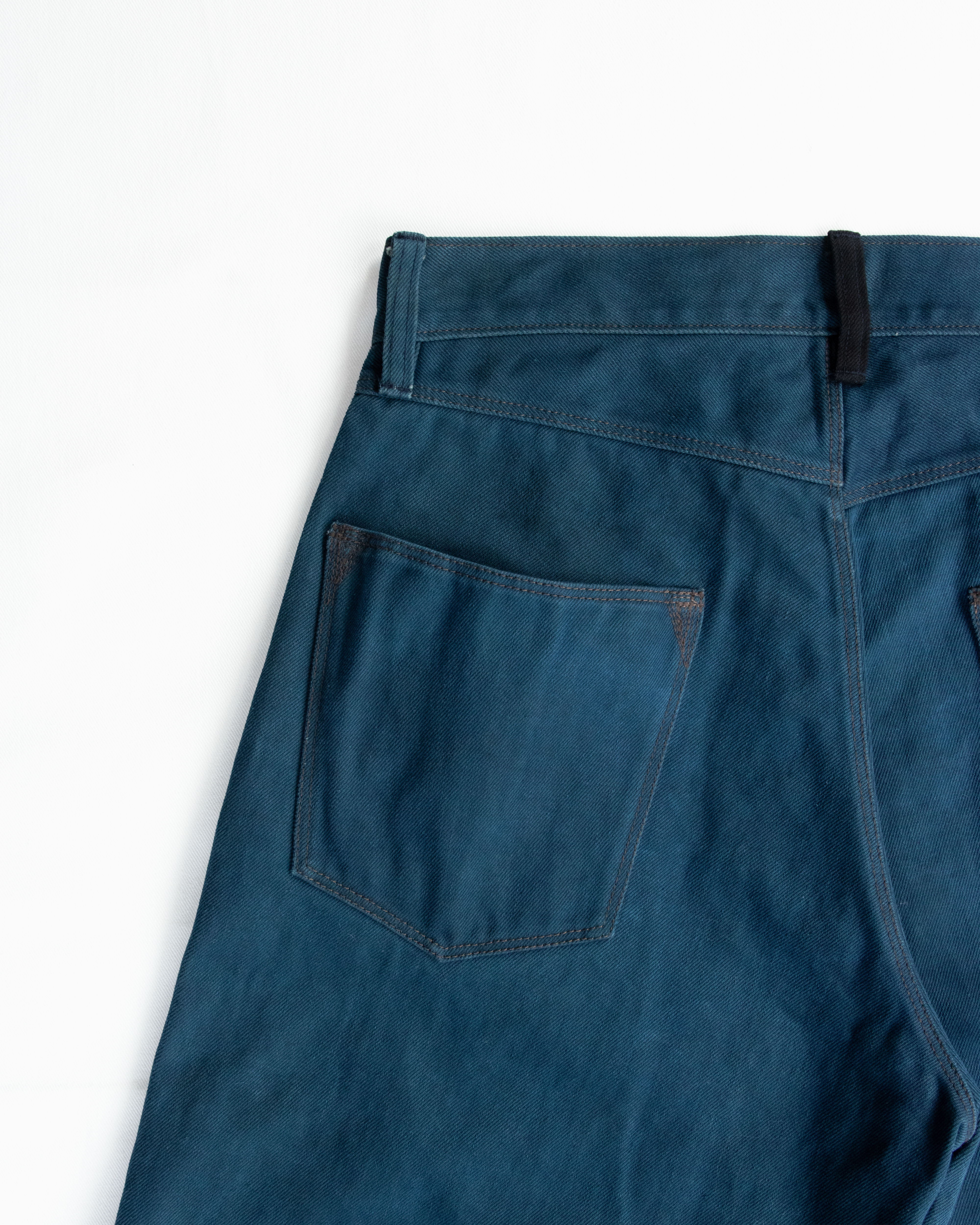 コインポケットと後ろベルトループのみ黒色を使用しているのでボディの墨藍との経年変化を楽しんでもらいたいです。