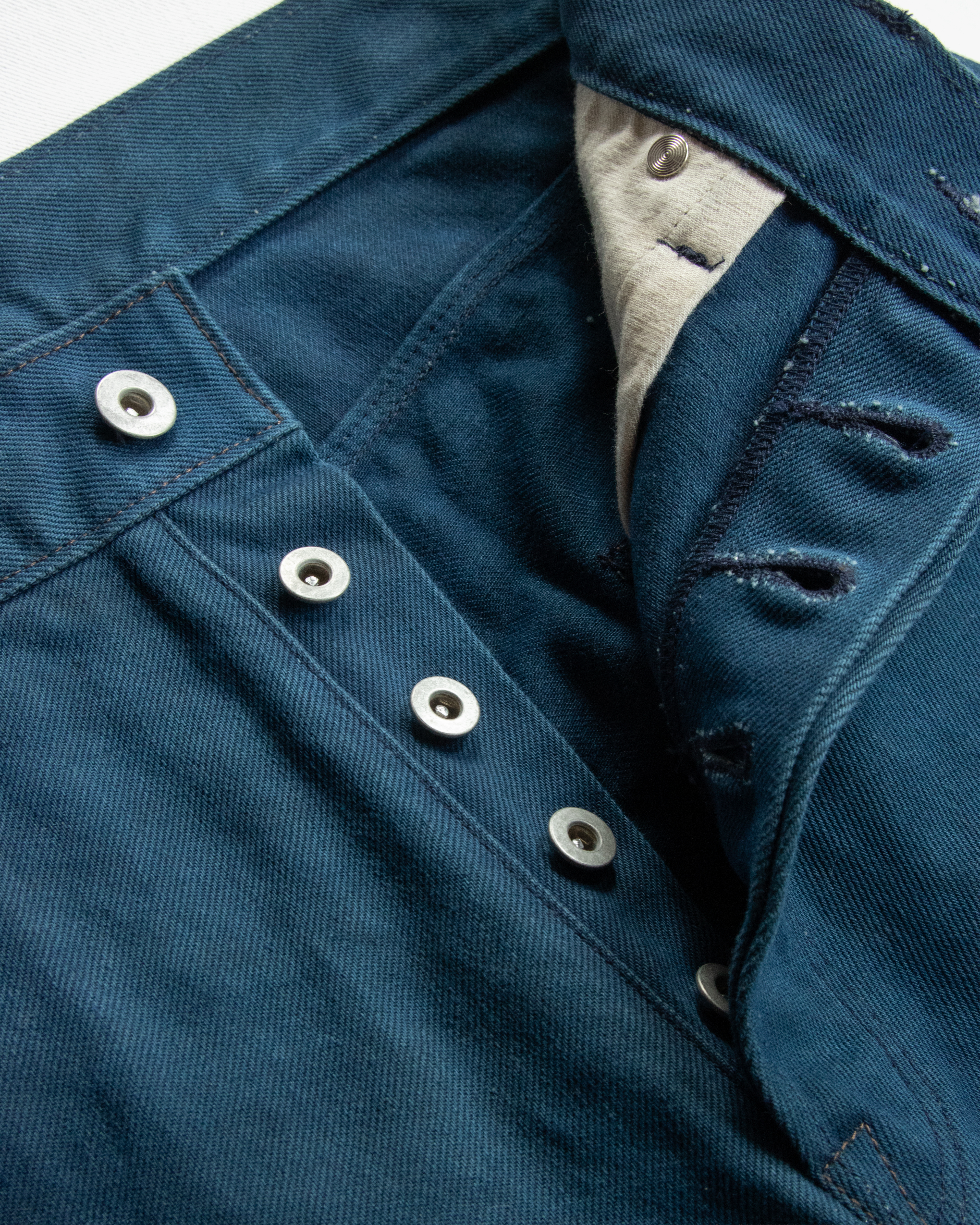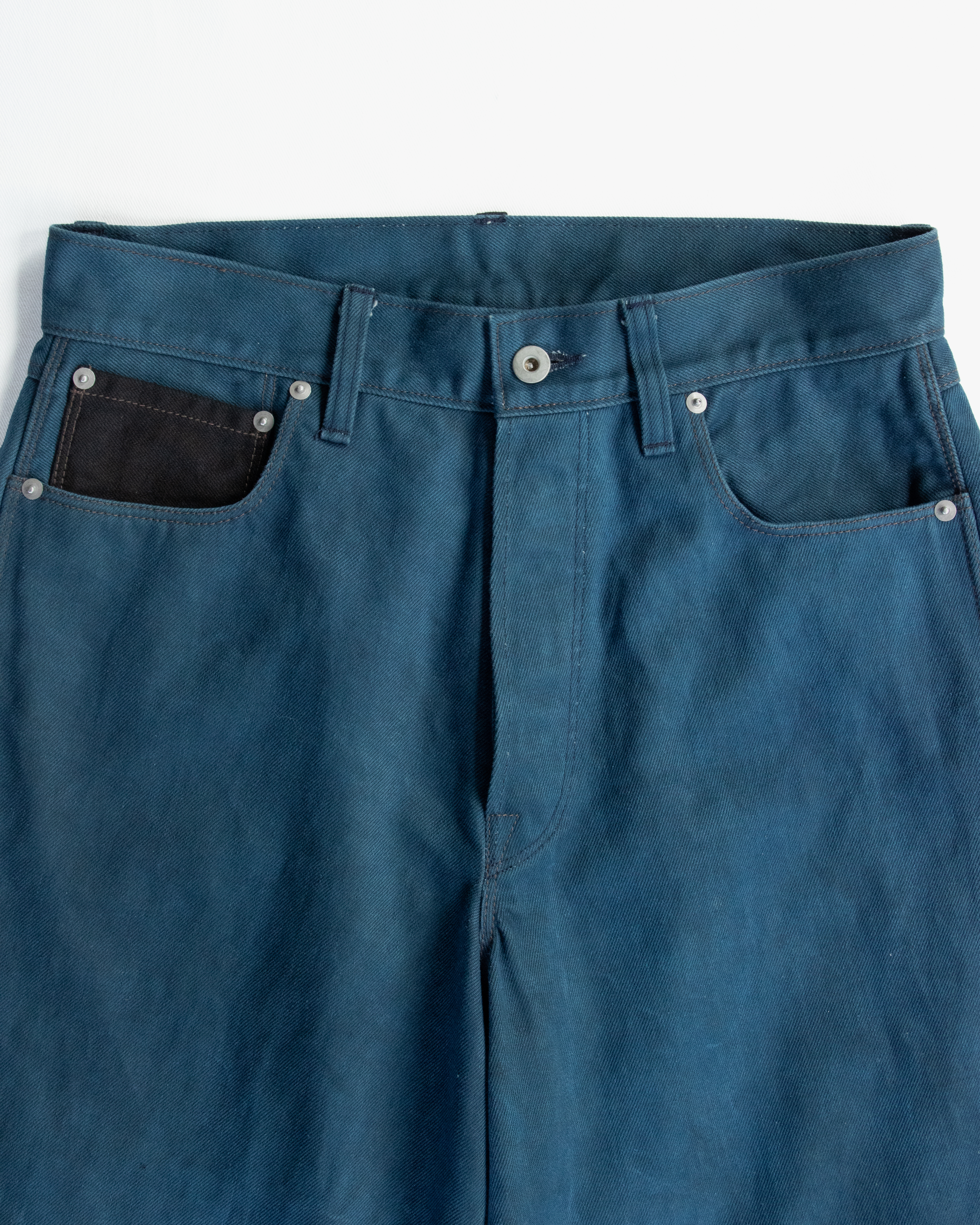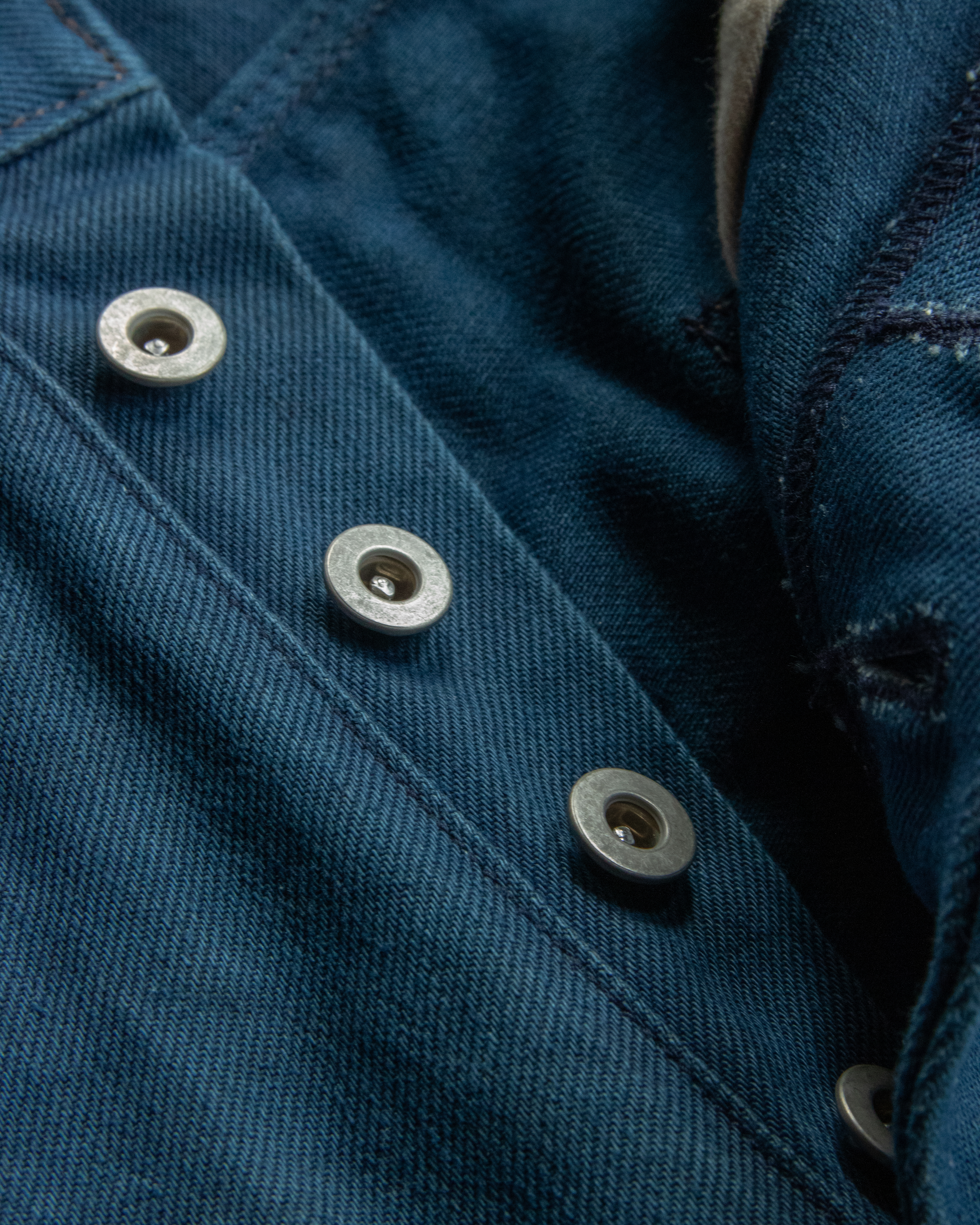 コインポケットと後ろベルトループのみ黒色を使用しているのでボディの墨藍との経年変化を楽しんでもらいたいです。