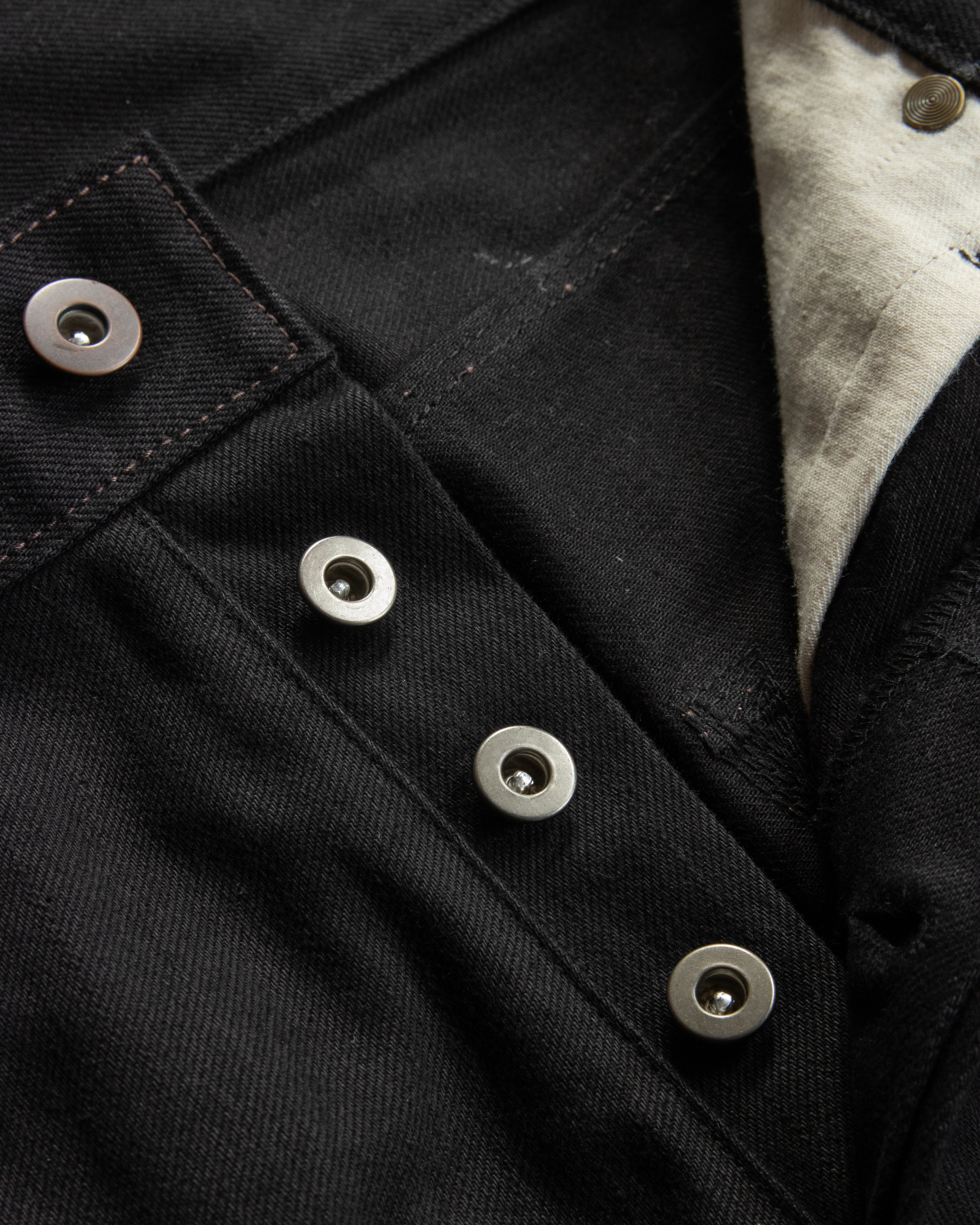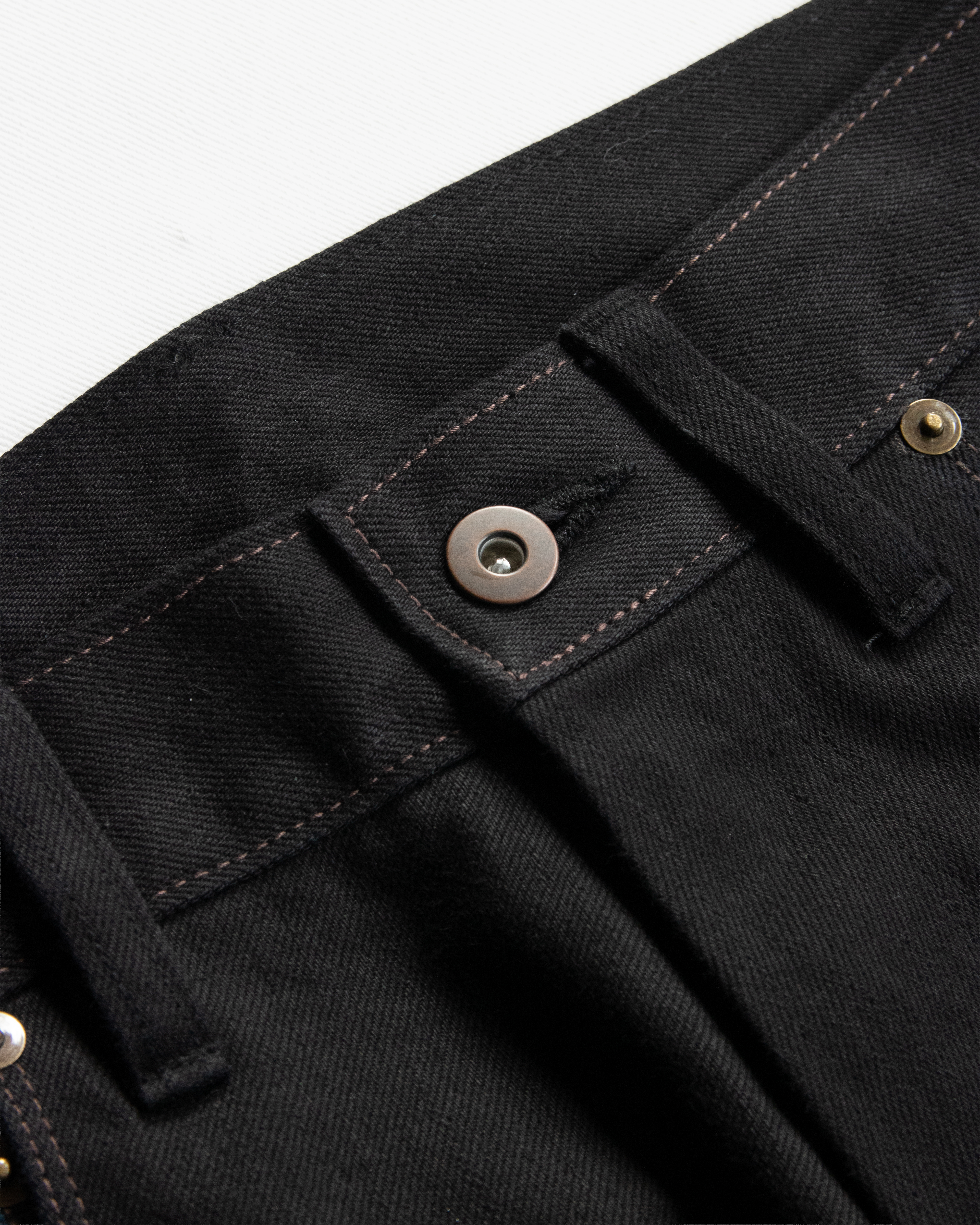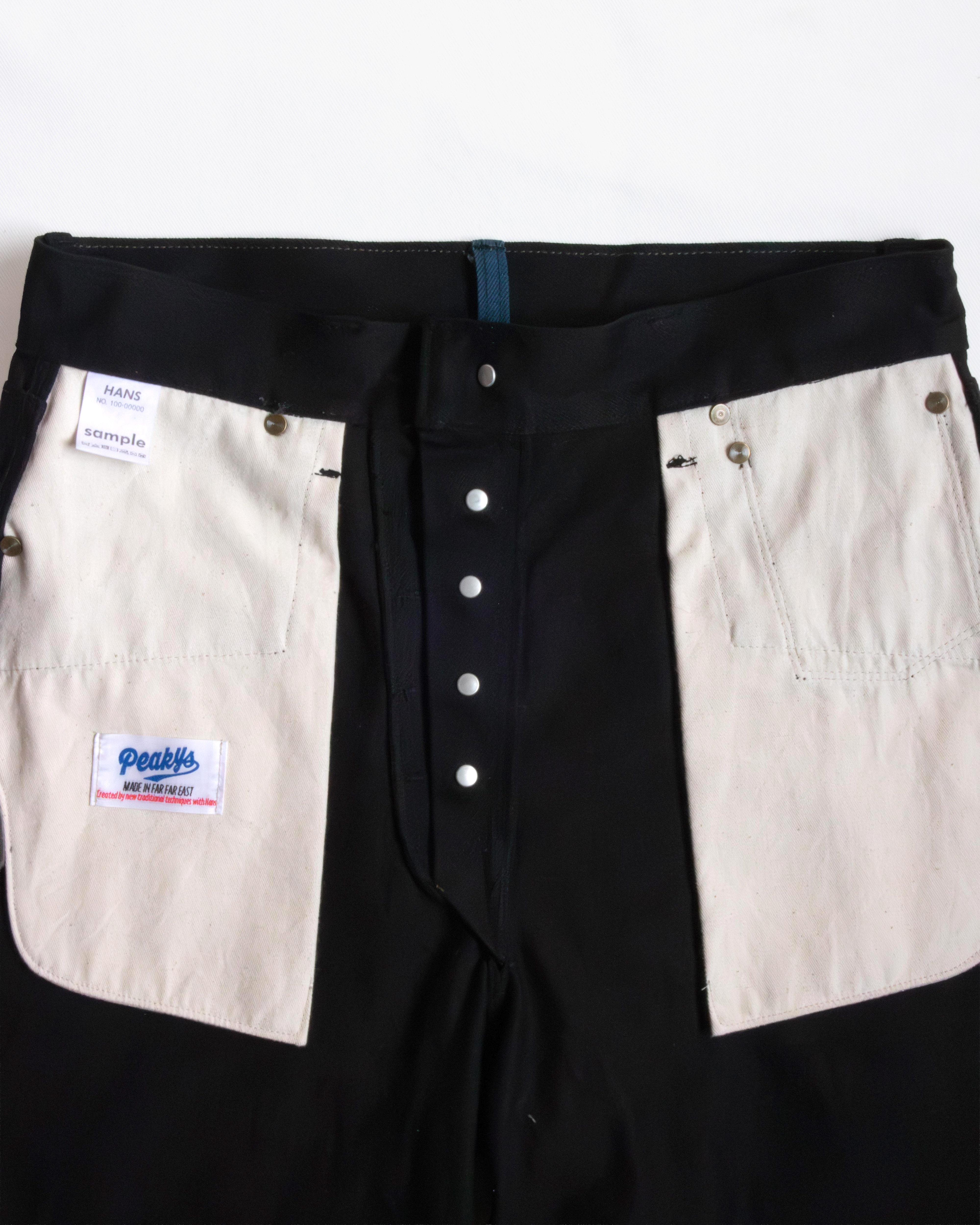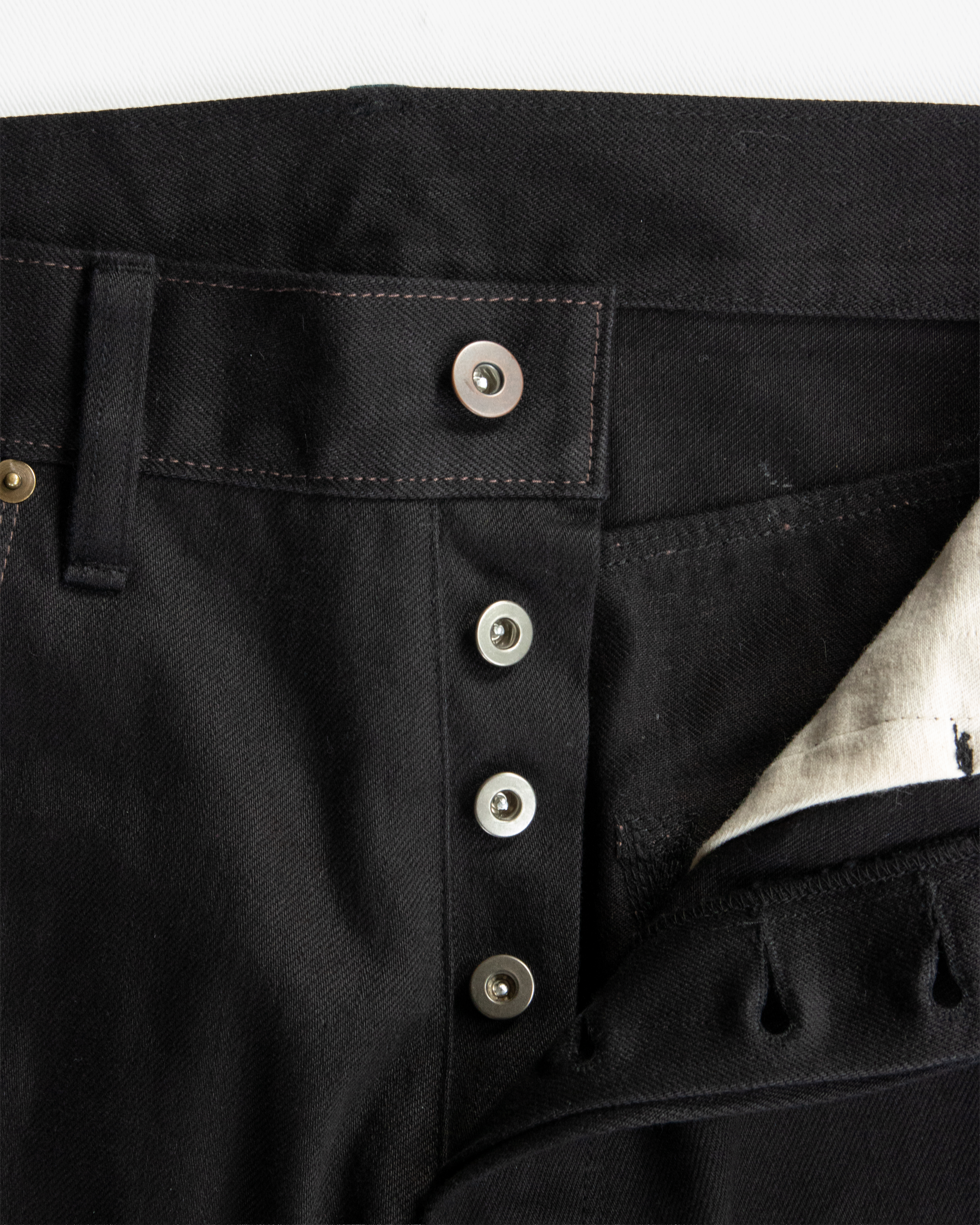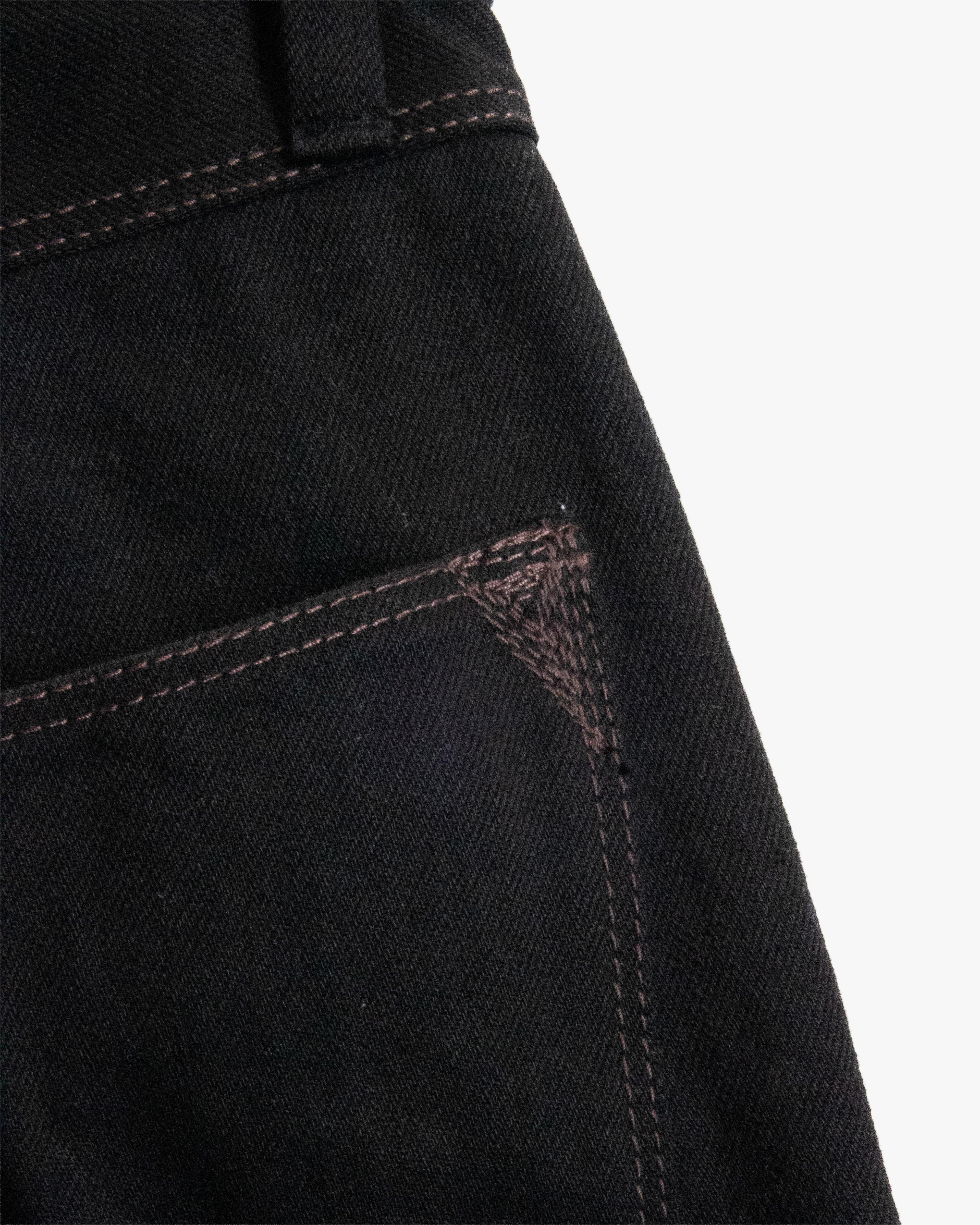 コインポケットと後ろベルトループのみ墨藍を使用しているのでボディの黒との経年変化を楽しんでもらいたいです。