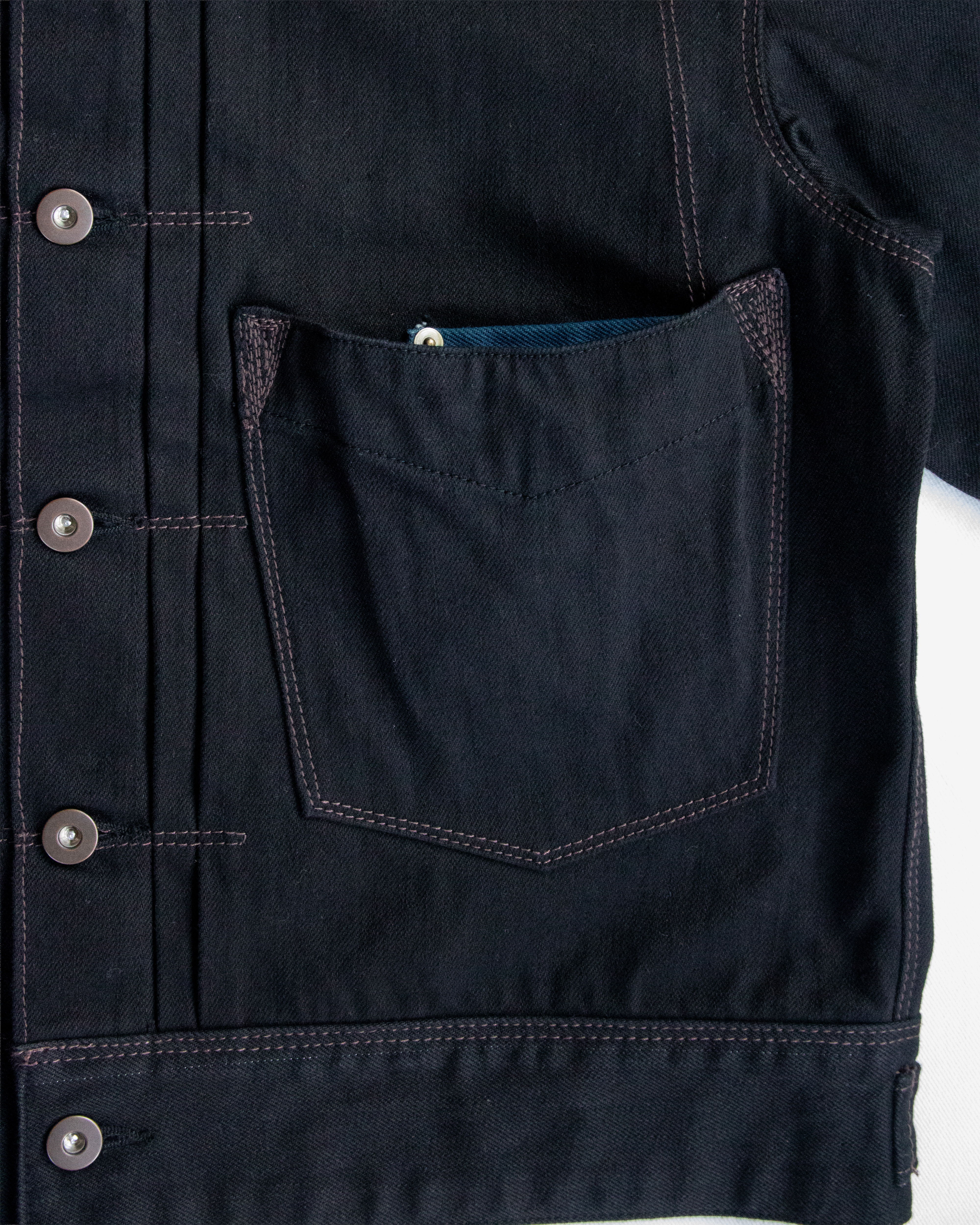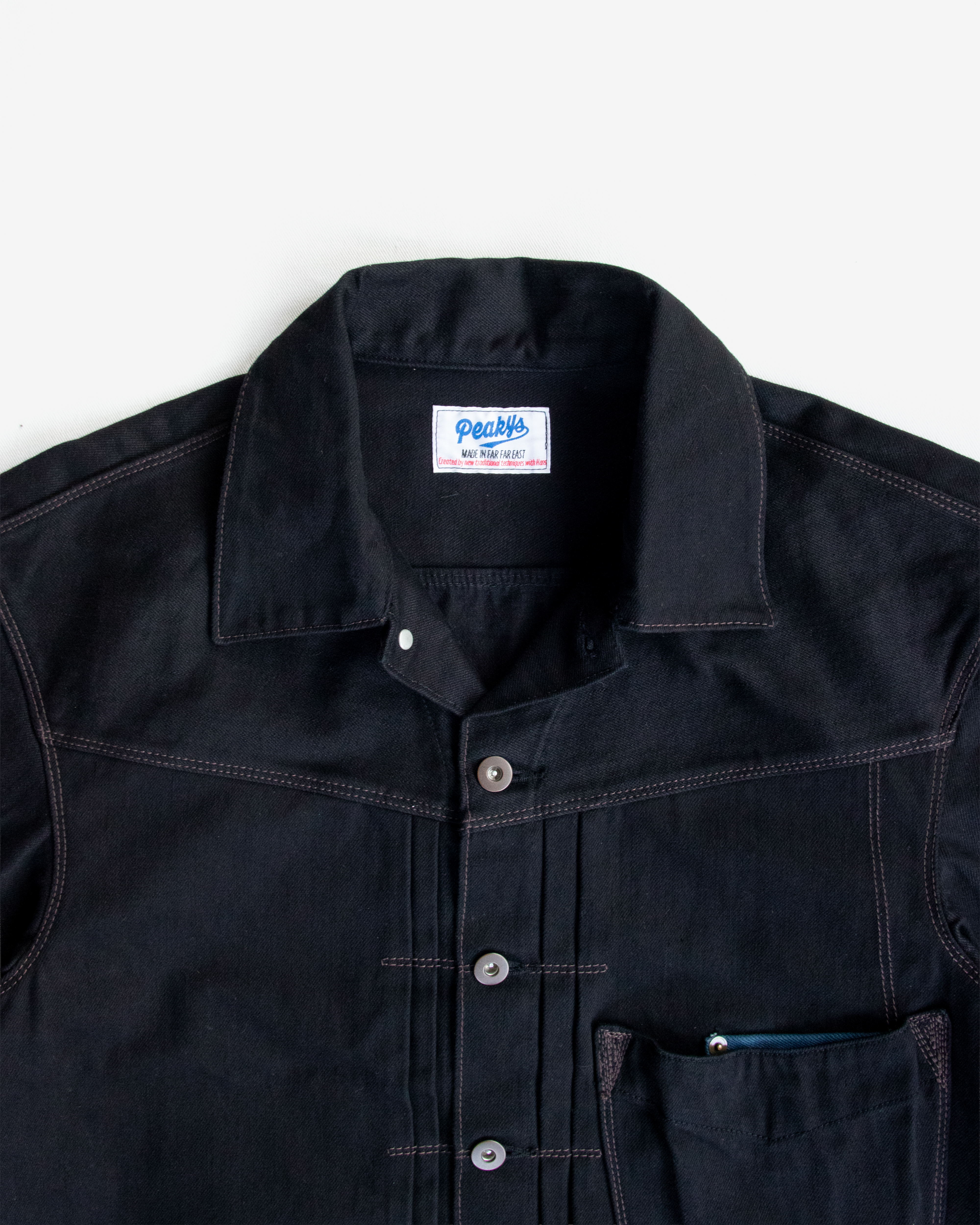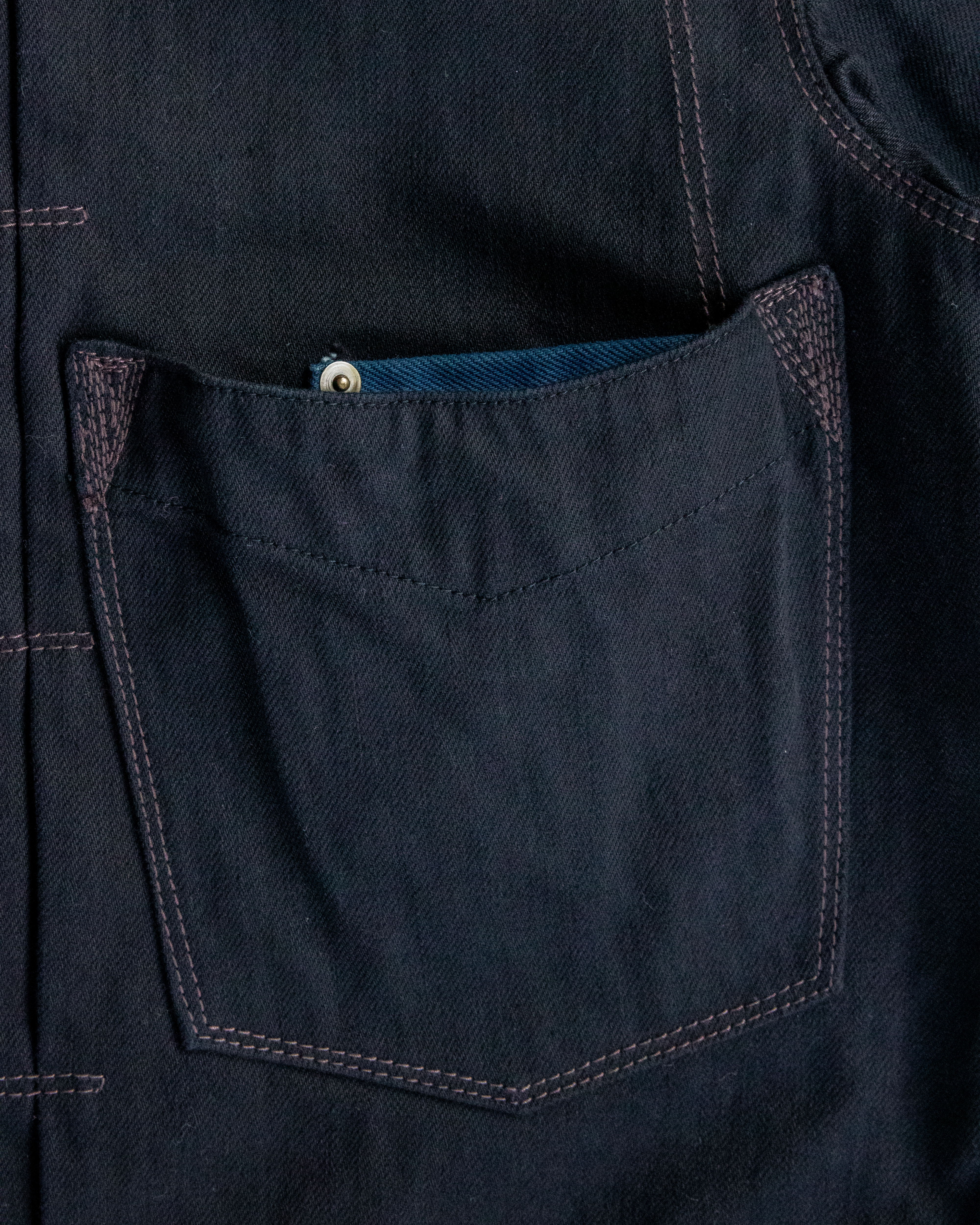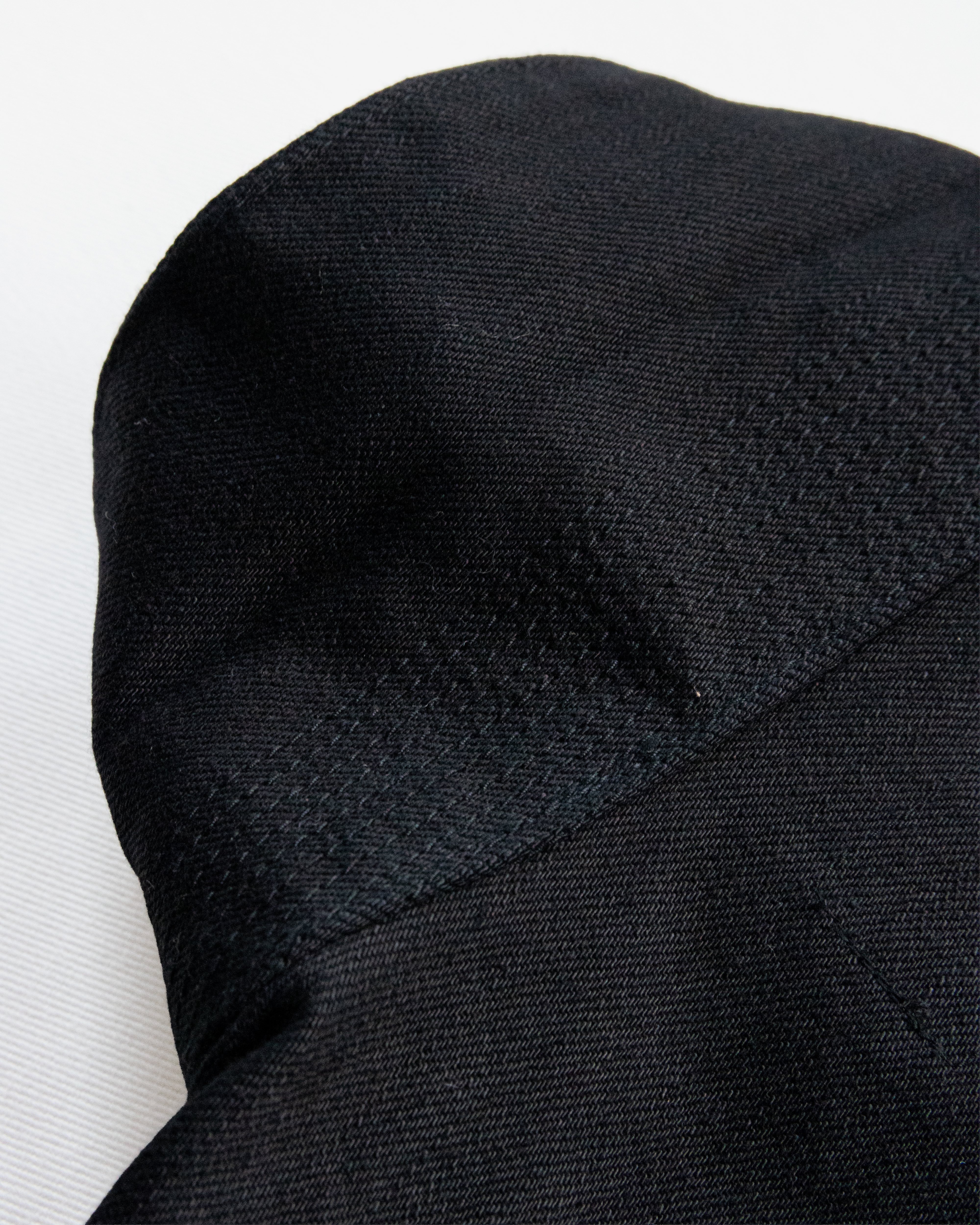 デニムジャケットの原型となったこの製品、当時はジャケットではなく"Blouse"と呼ばれていました、ステッチ幅や縫製方法が効率化、電動化されておらずシャツの様に丁寧に仕立てられて居た事と贅沢な生地使いを参照しつつ、シルエットやディテールを再構築しました。